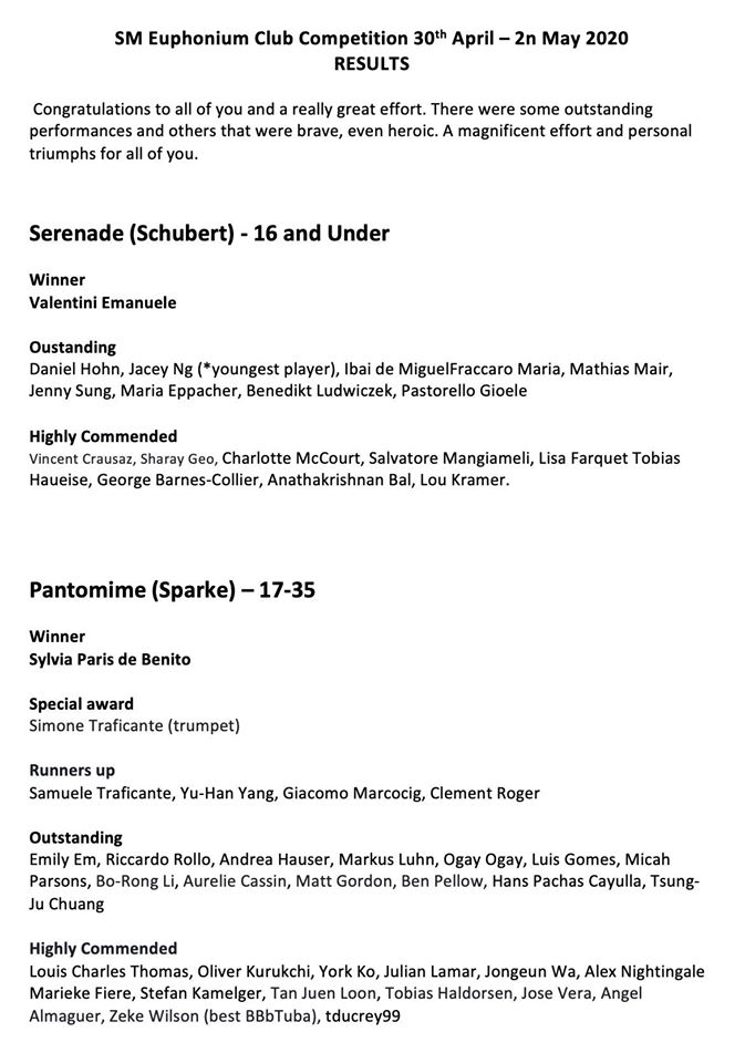 Silvia París de Benito a sus 17 años, ganadora del concurso “Steven Mead Euphonium Club” en la categoría de 17 a 35 años.