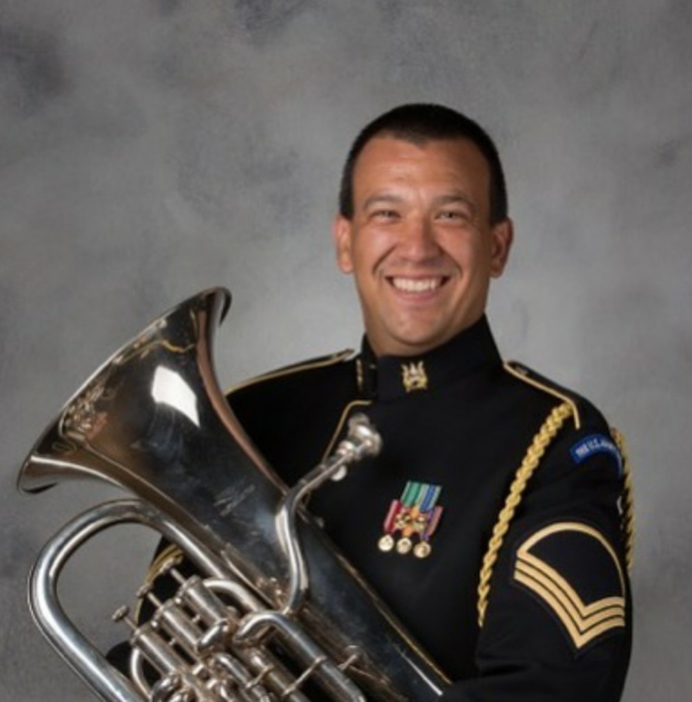 Hiram Díaz entrevista en su Instagram @hiramdiaz1 al bombardinista Chris Buckley, Miembro de la Banda Ceremonial del Ejército de los Estados Unidos
