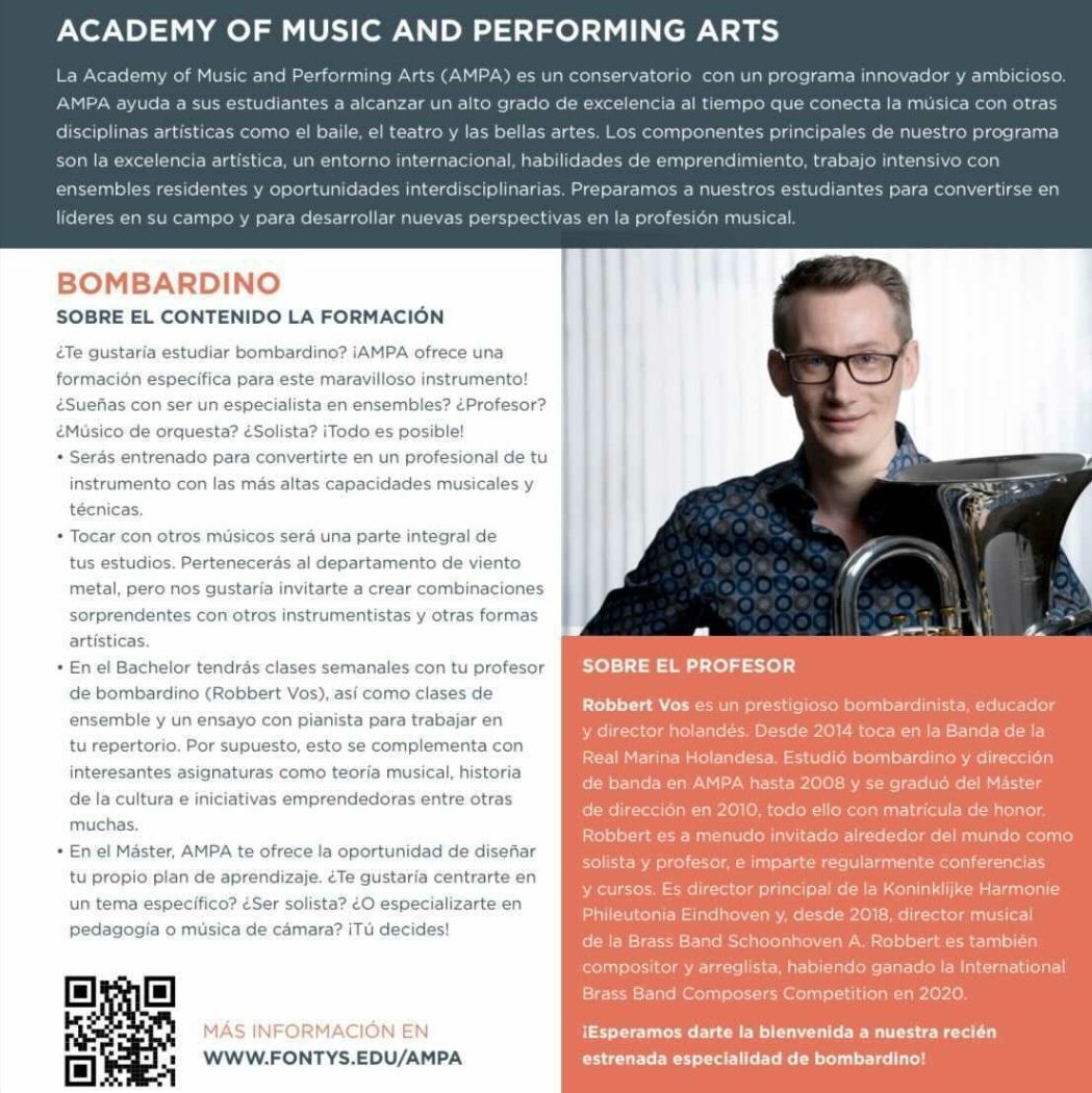 Robbert Vos, destacado solista internacional anuncia que será el próximo profesor de bombardino del Conservatorio de Tilburg durante el próximo curso.