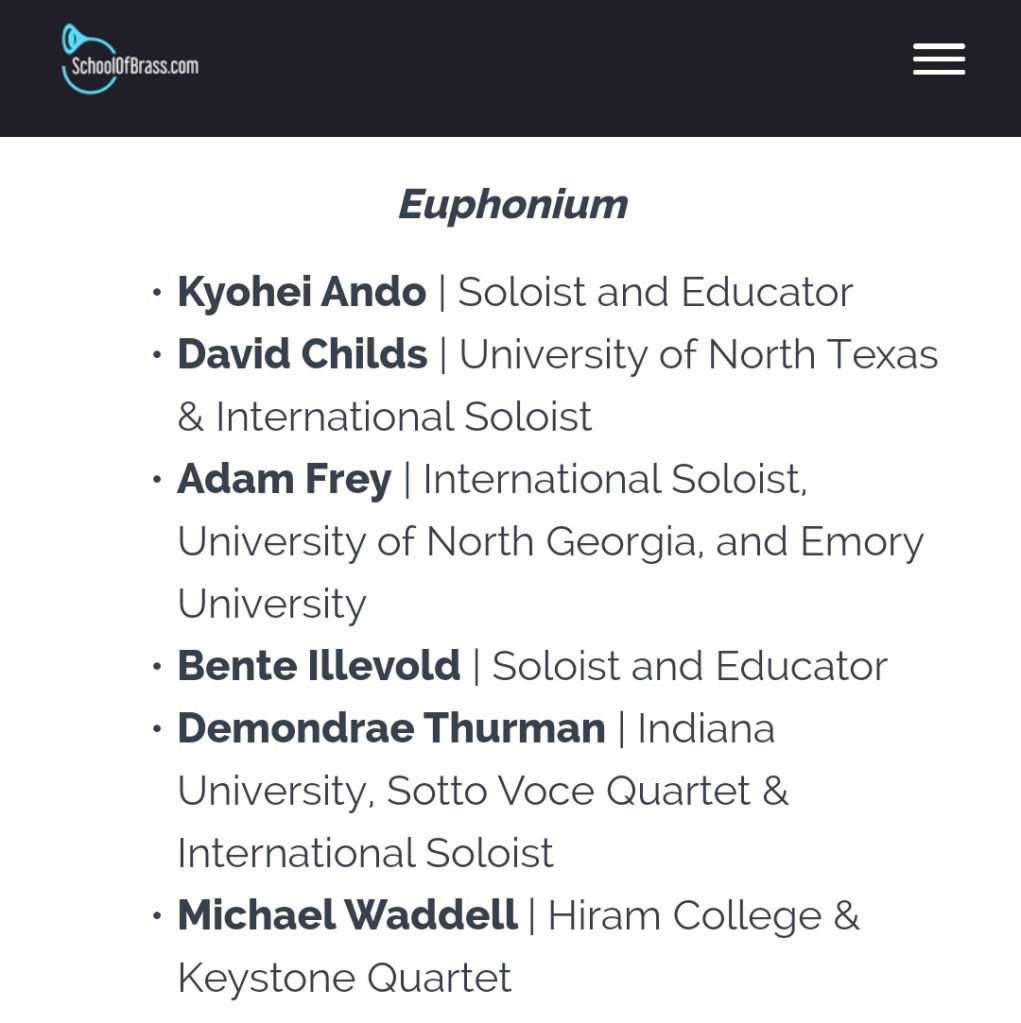 North Texas Low Brass Camp presenta l@s artistas del bombardino que impartirán masterclasses durante la primavera: Hiram Díaz, Mauro Martins, Hélène Escriva y David Childs.