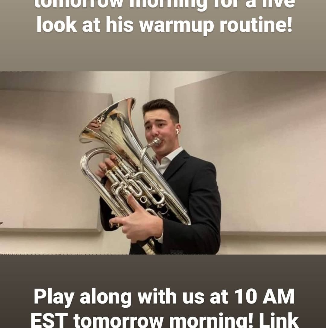 Desde la plataforma Zoom del «Euphonium Studio de la Indiana University»:sesión gratuita de calentamiento con el bombardinista Henry Otts.