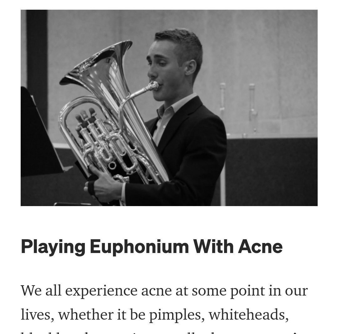 Disponible en la página web del «Euphonium Studio de la Indiana University»: el artículo «Playing euphonium with acne«, escrito por Troy Moeller y que versa sobre los problemas y algunos trucos para tocar el bombardino cuando te aparece el acné.