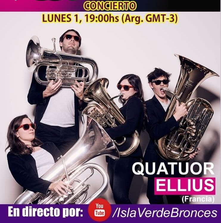 Desde el canal YouTube del Festival Internacional Cabo Verde Bronces, concierto en streaming del Cuarteto de Bombardinos y Tubas «Quatuor Ellius».