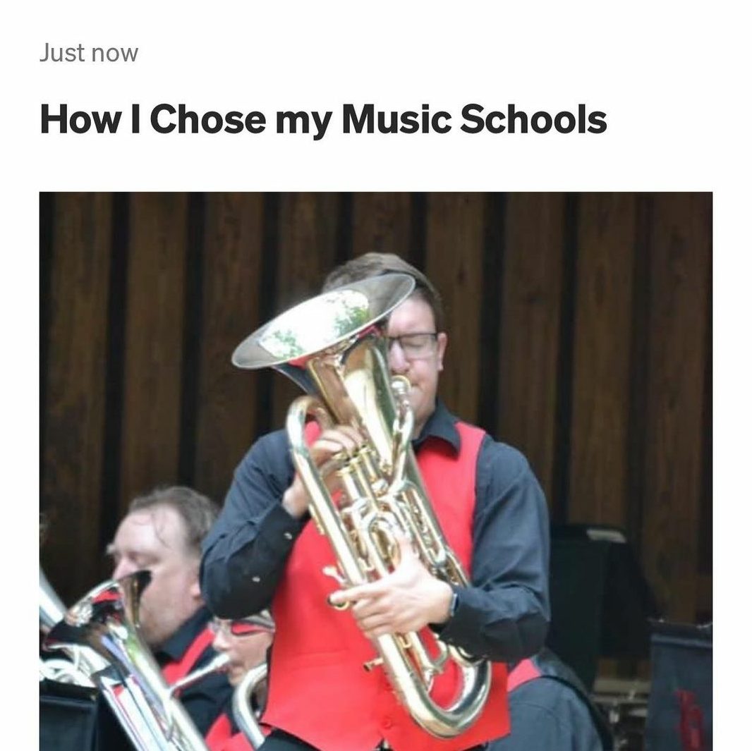Disponible en la página web del «Euphonium Studio de la Indiana University»: el artículo «How I Chose my Music Schools«, escrito por Josh Bishop y que versa sobre sus razones para ir a las escuelas que tiene y qué factores deben considerar los estudiantes al tomar sus decisiones.