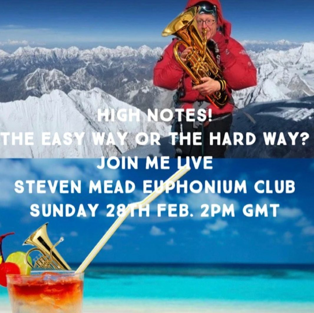 El bombardinista británico, Steven Mead ha ofrecido una nueva charla-masterclass en su página de Facebook «Steven Mead Euphonium Club» la cual ha tratado de abordar el registro agudo bajo el título de «High Notes! The easy way or the hard way!«