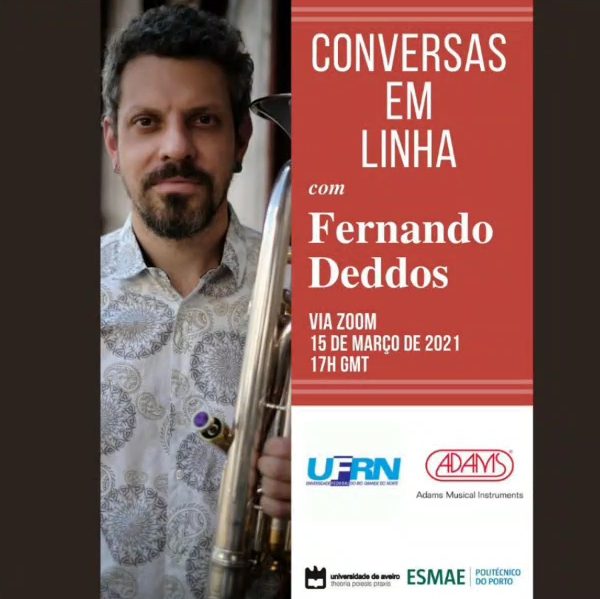 El pasado lunes pudimos disfrutar de una entrevista / diálogo al bombardinista brasileño Fernando Deddos con las clases de la ESMAE (Escuela Superior de Música y Artes del Porto Show) y con la Universidad de Aveiro de Portugal. El evento estuvo abierto al público y comenzó a las 5pm GMT a través de la plataforma Zoom. Dicho evento fue llevado a cabo gracias al profesor Ricardo Antão y a las instituciones mencionadas anteriormente.