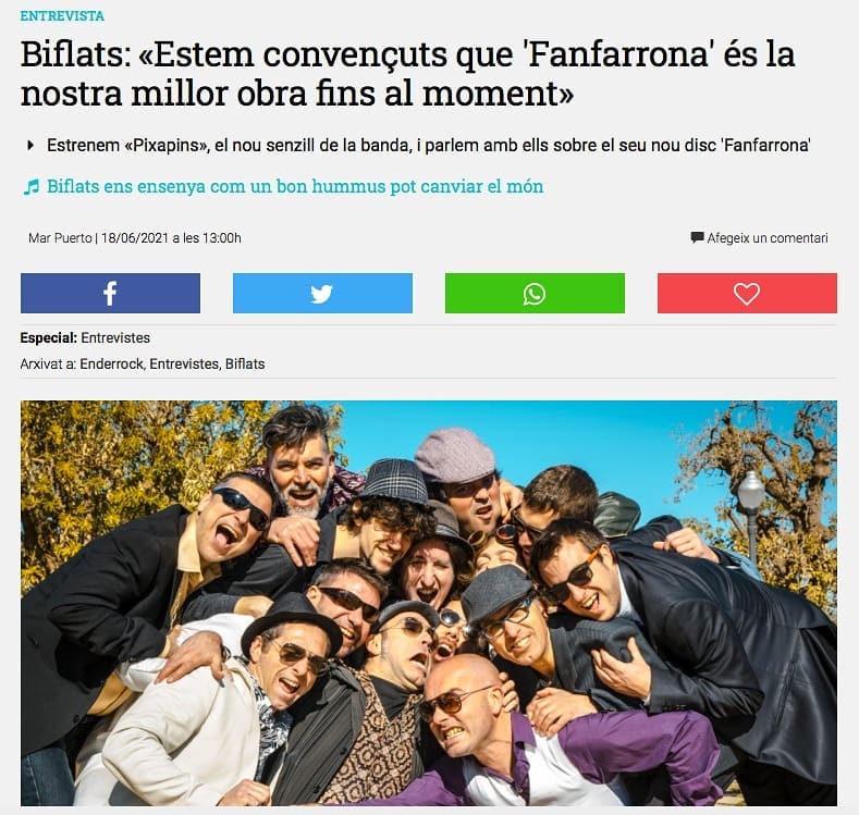 El nuevo CD de Biflats «Fanfarrona» ya esta disponible en todas las plataformas digitales. Una apuesta por la fanfarria que en palabras del grupo «es su mejor obra hasta el momento». ¡Enhorabuena por el trabajo!