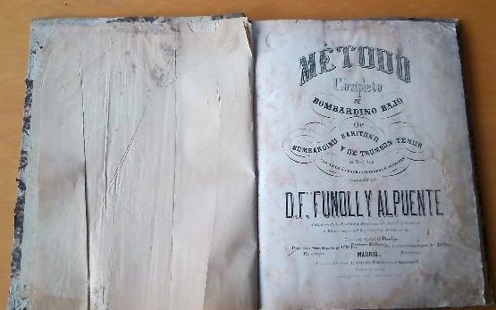 Su autor fue 𝗙𝗿𝗮𝗻𝗰𝗶𝘀𝗰𝗼 𝗙𝘂𝗻𝗼𝗹𝗹 𝘆 𝗔𝗹𝗽𝘂𝗲𝗻𝘁𝗲 (1795-1859), Caballero de la Real Orden Americana de Isabel la Católica y Músico Mayor del Reglamento Infanta de Toledo nº 35. Según sus propias palabras recogidas en el Prólogo, escribió este método por su propio deseo de hacer algo en beneficio del arte que profesaba, para instruir teórica y prácticamente a la juventud estudiosa y especialmente porque el Bombardino se venía aprendiendo y enseñando en aquella época sin más auxilio que el instinto y las especiales dotes que Dios había concedido a los españoles para la música, ya que ningún método se había publicado en castellano hasta la fecha, y si algunos habían circulado en idiomas extranjeros, estos habían sido tan raquíticos e incompletos que sólo habían servido para enseñar las posiciones de su escala general. Según el portal de datos bibliográficos de la Biblioteca Nacional de España, el «Método completo de Bombardino Bajo, de Bombardino Barítono y de Trombón Tenor en Do o Sib, con tres o cuatro cilindros o pistones» fue publicado en Madrid en el año 1862 y fue propiedad del conocido editor Antonio Romero, quien lo guardaba para su venta en su Almacén de Música e Instrumentos ubicado en la calle de Preciados, nº 1 de la misma ciudad. El método, planteado de forma progresiva y con matices que diferenciaban los Instrumentos en Do y en Si b, cubre diversos aspectos técnicos y prácticos del estudio del 𝗕𝗼𝗺𝗯𝗮𝗿𝗱𝗶𝗻𝗼 tales como: