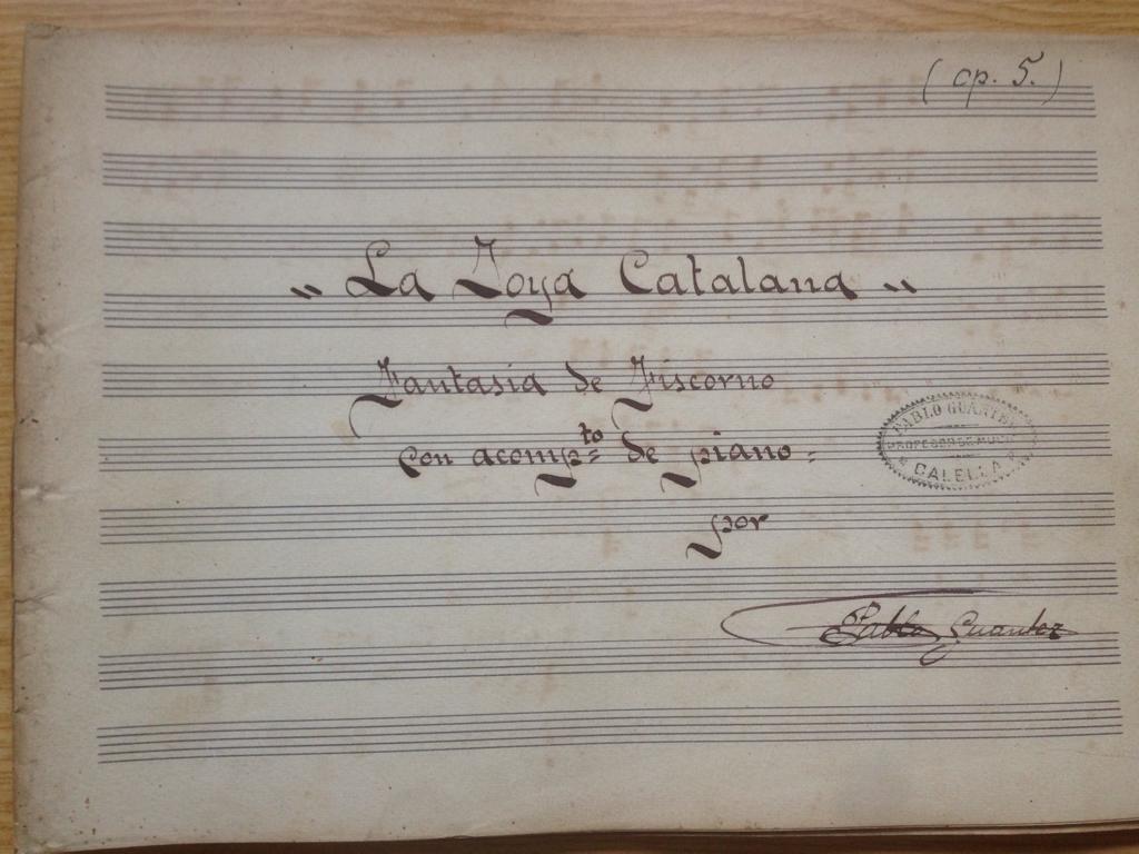 Por último, también comprobaron que efectivamente se trataba de la misma obra gracias a las gestiones efectuadas por el fiscornista y trombonista Josep Moliner Pedrós, quien le facilitó a Frederic una copia de la partitura original. Con todo ello, podemos afirmar que «La Joya Catalana: fantasía de fiscorno» se trata de una transcripción para banda, compuesta originariamente para cobla a principios del s. XX por Pau Guanter.