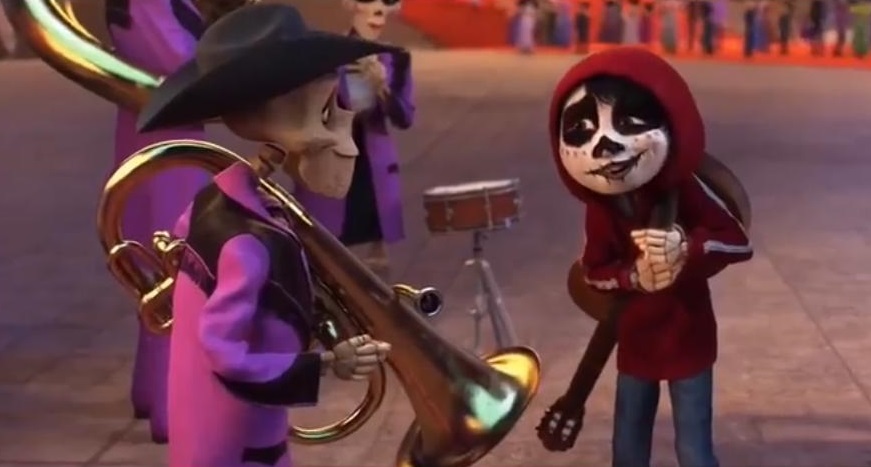 Finalmente el concurso lo gana una banda de mariachis llamada «𝗟𝗼𝘀 𝗖𝗵𝗮𝗰𝗵𝗮𝗹𝗮𝗰𝗼𝘀», formada por varios músicos entre los que encontramos un 𝗯𝗼𝗺𝗯𝗮𝗿𝗱𝗶𝗻𝗶𝘀𝘁𝗮. Una vez en la fiesta, Miguel intenta entrar sin invitación y rápidamente es expulsado de la fila. En ese momento se encuentra de nuevo con «𝗟𝗼𝘀 𝗖𝗵𝗮𝗰𝗵𝗮𝗹𝗮𝗰𝗼𝘀», y Miguel les pide el favor para que lo introduzcan de contrabando en la fiesta. La banda decide ayudarlo metiéndolo dentro de un sousafón, y así poder alcanzar su sueño de conocer a su ídolo, el maestro Ernesto de la Cruz.