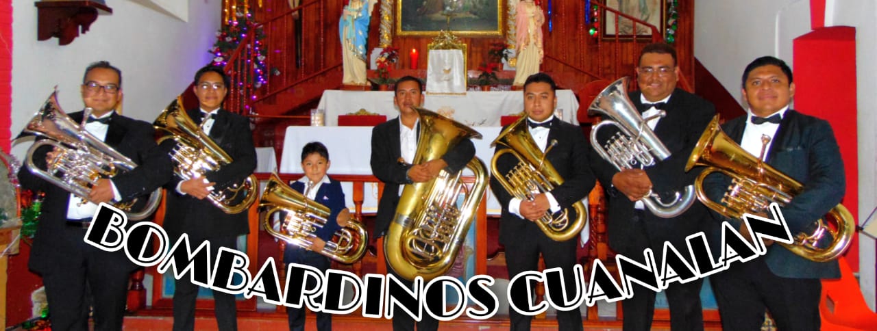 Desde México os presentamos a Bombardinos Cuanalan, también conocidos como “Dinastía Gómez”. Aunque a priori surgió como un dúo padre e hijo, pronto se le unieron varios miembros hasta llegar a la formación actual, la cual lleva un año en funcionamiento con los bombardinistas Marco Aurelio Gomez Villagran, Marco Aurelio Gomez Montes, Luis Daniel Rocha Solano, Alejandro Vidal Gómez, Ricardo Rivero Sánchez, Rafael Ortiz Gómez y Jose Alberto Tablada Ramos.