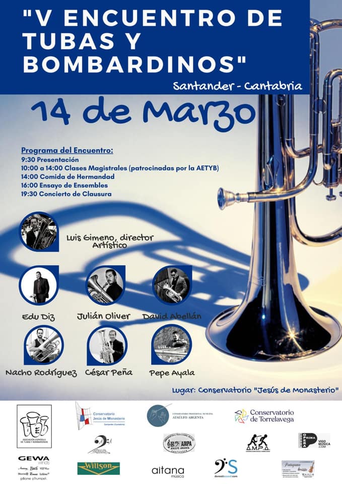 La iniciativa de realizar un encuentro de tubas y bombardinos es con la intención de reunir a alumnos de todos los niveles y de varias ciudades y centros de estudios, con la finalidad de dar visibilidad a nuestro instrumento y poder tener un día de aprendizaje y convivencia entre todos. El orden del día seráSigue leyendo «V Encuentro de Tubas y Bombardinos (Ciudad de Santander)»