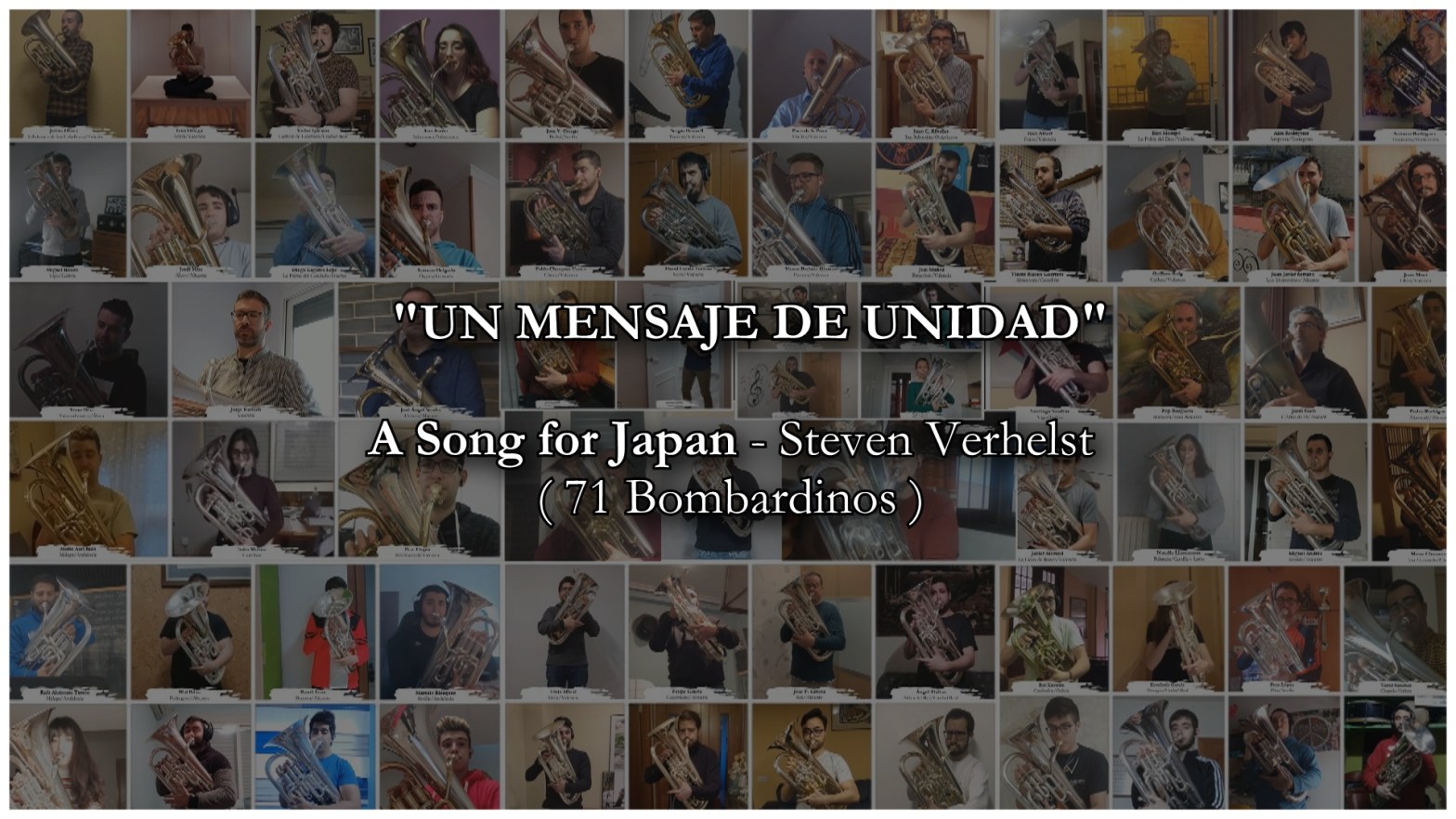 🎼Tema: A Song for Japan – Steven Verhelst 🎬Coordinador del Proyecto: Jose Luis Casas 🎧Producción Musical: Mario Alés y Jose Luis Casas 📹Edición de vídeo. Antonio Rodríguez 📷Fotomontaje: Marcelo Blázquez 🔊Mensaje Final: Pep Burguera 🧾Subtítulos: Pablo Guerrero Grabado por 71 bombardinistas de toda España. Editado en los estudios PAM Collective durante el mes de marzoSigue leyendo «UN MENSAJE DE UNIDAD (71 Bombardinos) – A Song for Japan»