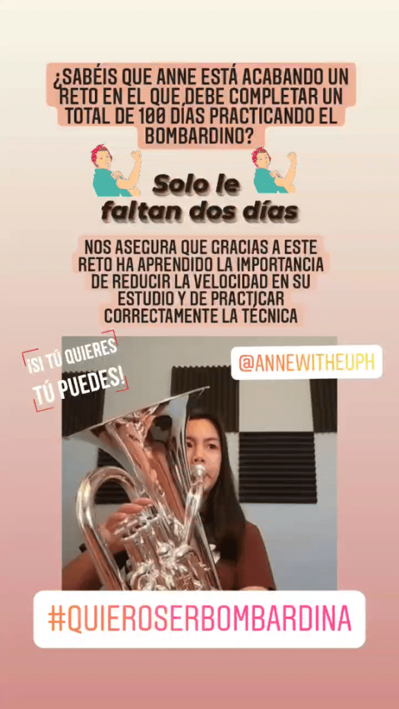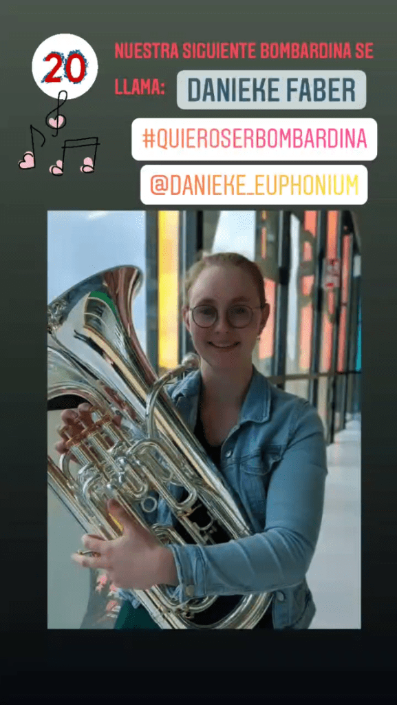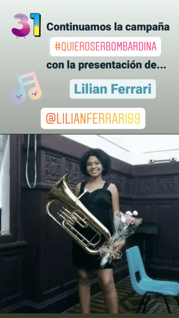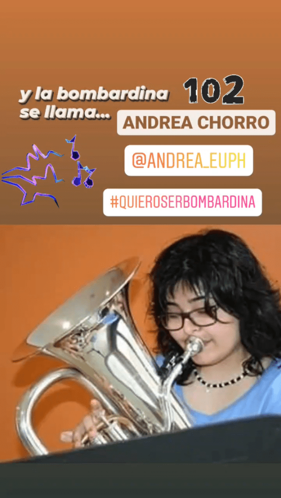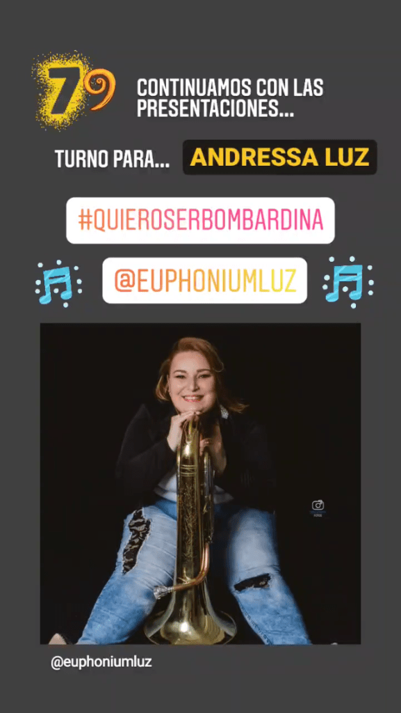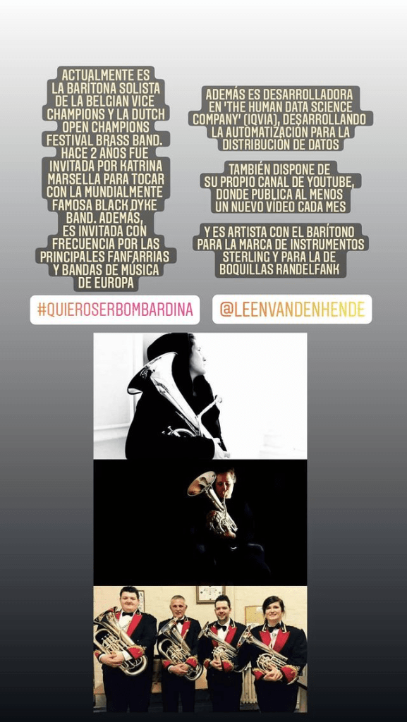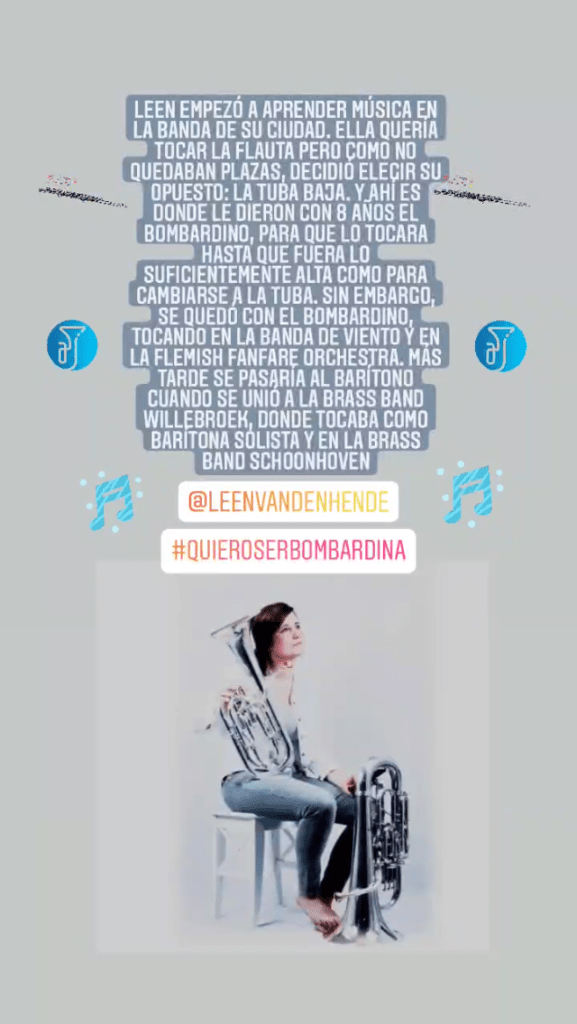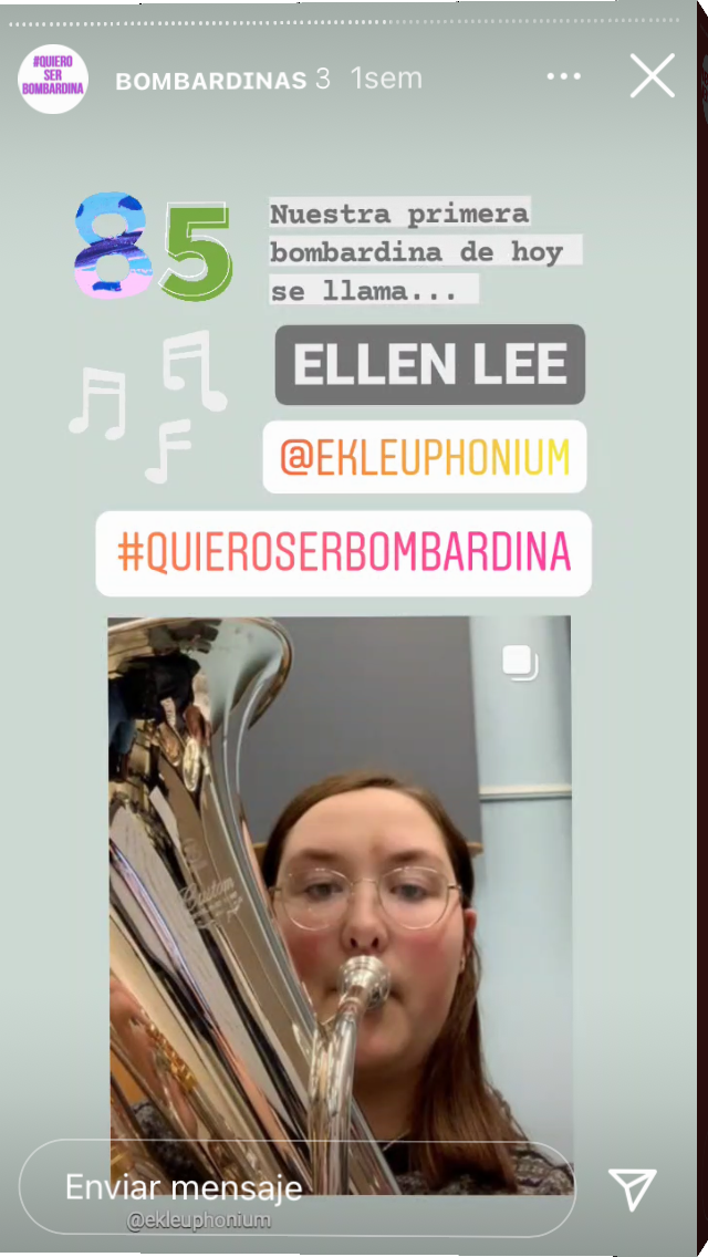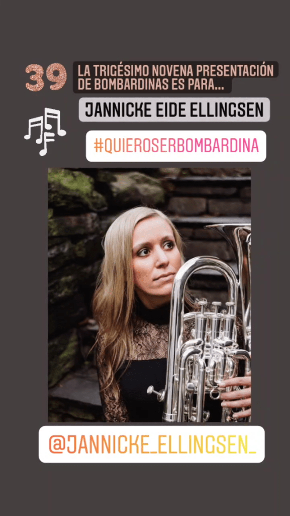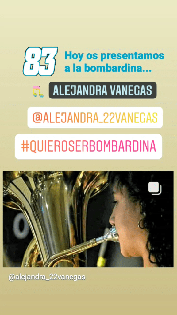 La estrategia principal de la campaña radica en la difusión y promoción en RRSS de mujeres de cualquier parte del mundo que toquen el bombardino. Desde el 8 de enero hasta el 8 de marzo, nuestras RRSS compartirán diariamente fotos y vídeos de mujeres «bombardinas» con el objetivo de fomentar la inclusión de la mujer en este instrumento, visibilizar su papel, reivindicar que no son una excepción en el sector y que son modelos a seguir para las futuras generaciones de mujeres bombardinistas.