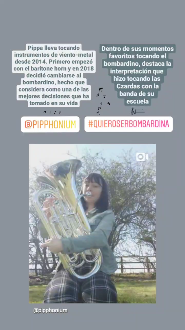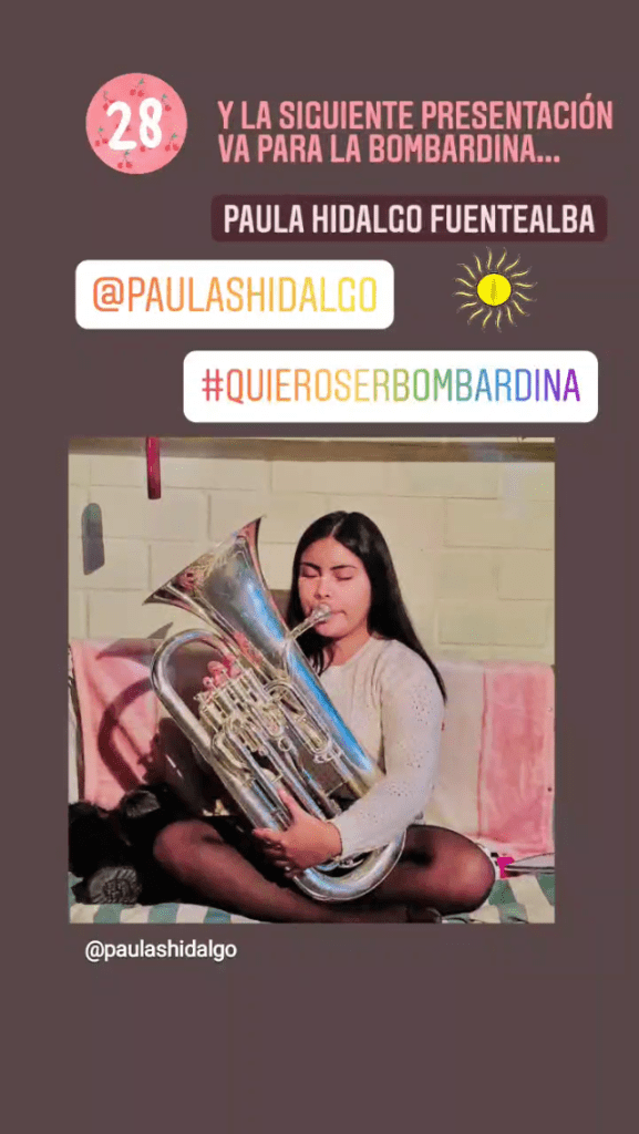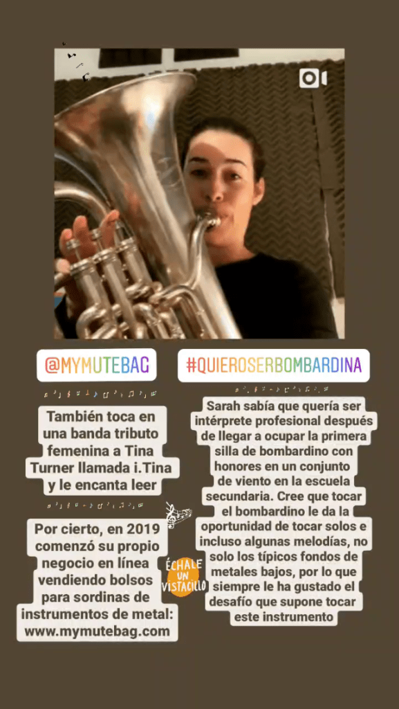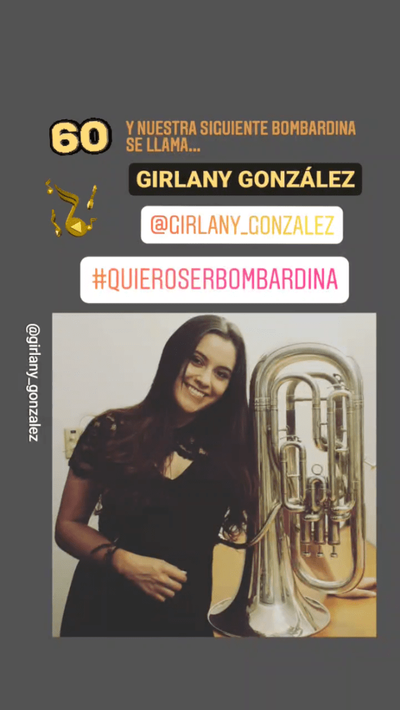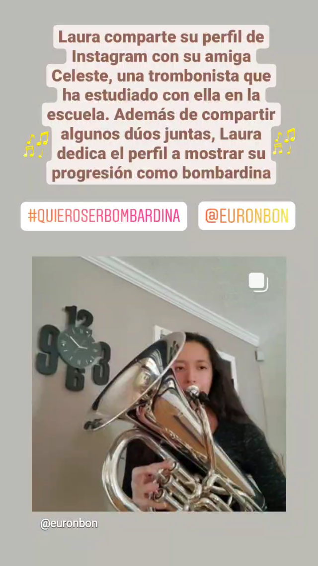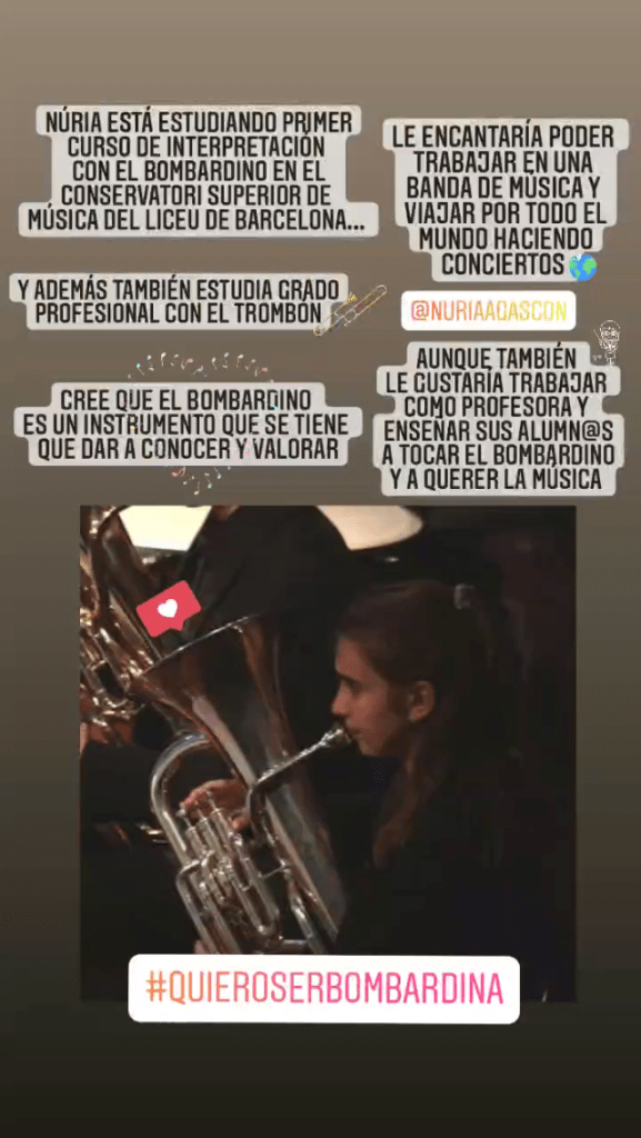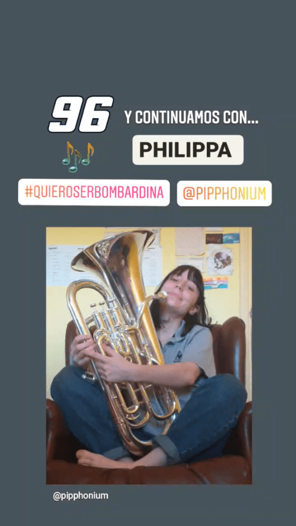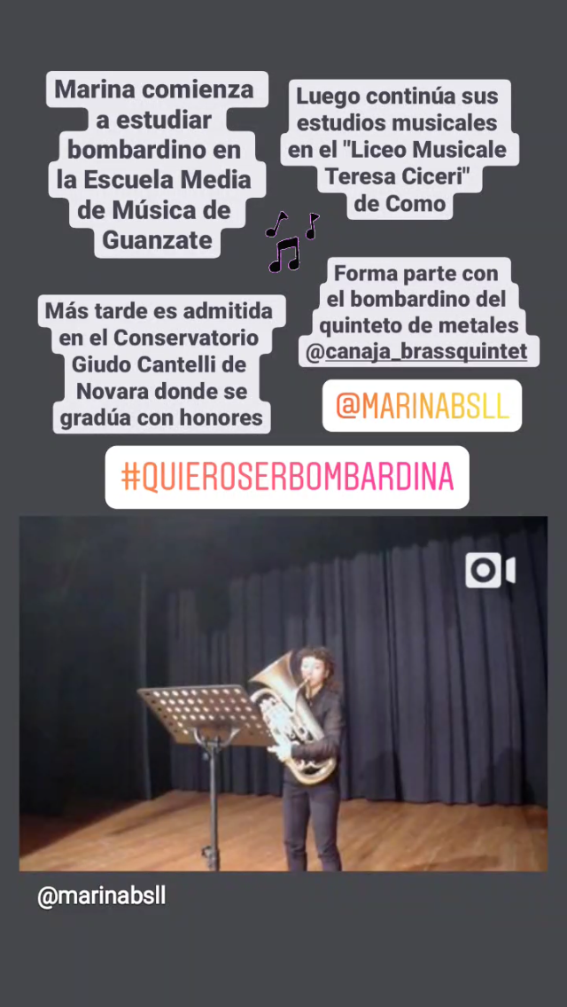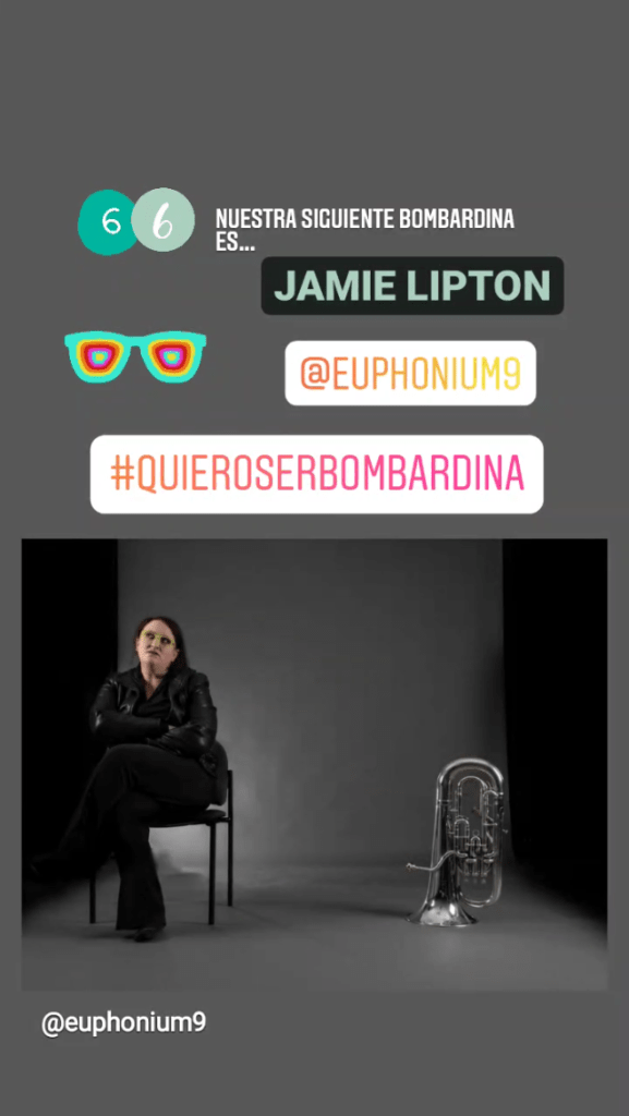 La estrategia principal de la campaña radica en la difusión y promoción en RRSS de mujeres de cualquier parte del mundo que toquen el bombardino. Desde el 8 de enero hasta el 8 de marzo, nuestras RRSS compartirán diariamente fotos y vídeos de mujeres «bombardinas» con el objetivo de fomentar la inclusión de la mujer en este instrumento, visibilizar su papel, reivindicar que no son una excepción en el sector y que son modelos a seguir para las futuras generaciones de mujeres bombardinistas.