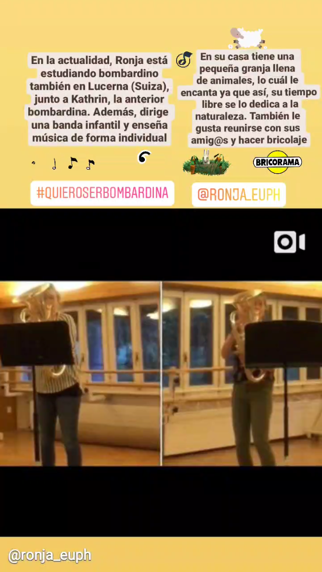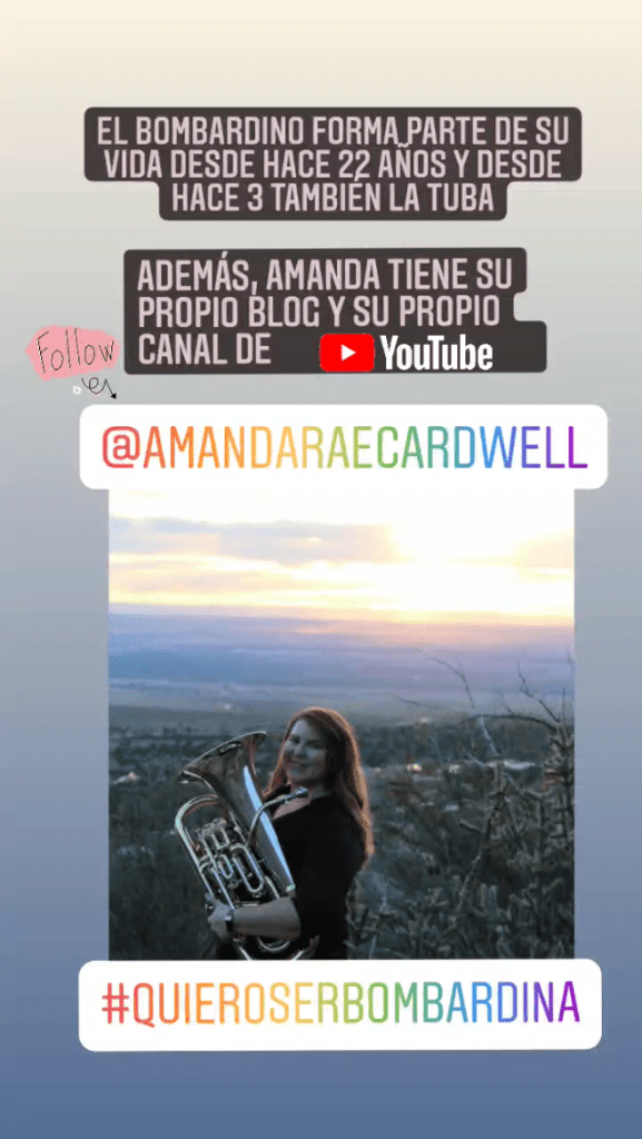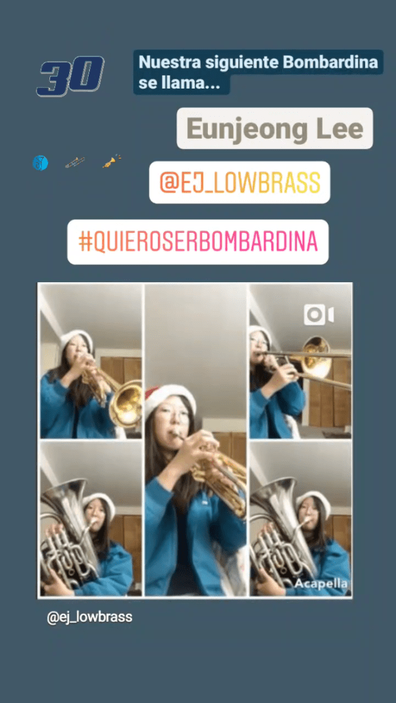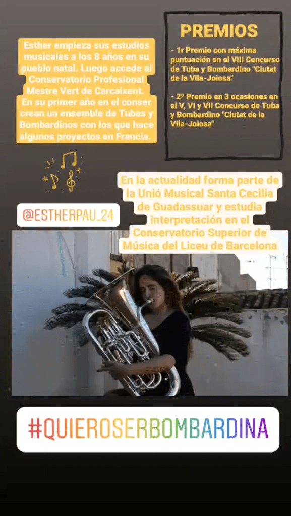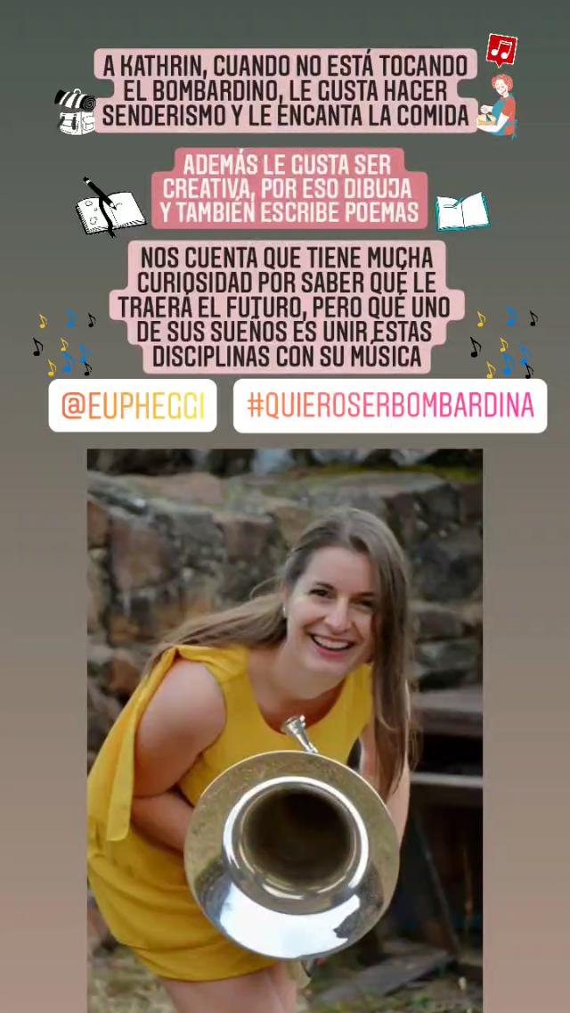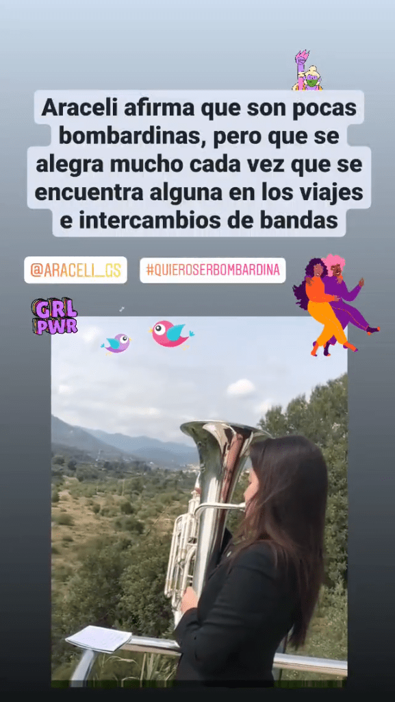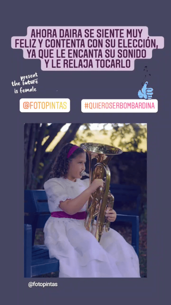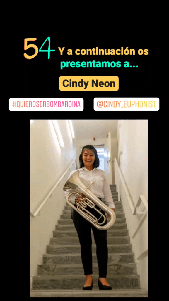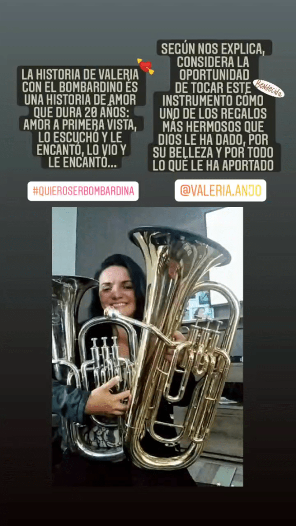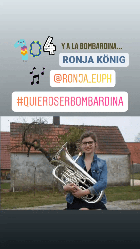 La estrategia principal de la campaña radica en la difusión y promoción en RRSS de mujeres de cualquier parte del mundo que toquen el bombardino. Desde el 8 de enero hasta el 8 de marzo, nuestras RRSS compartirán diariamente fotos y vídeos de mujeres «bombardinas» con el objetivo de fomentar la inclusión de la mujer en este instrumento, visibilizar su papel, reivindicar que no son una excepción en el sector y que son modelos a seguir para las futuras generaciones de mujeres bombardinistas.