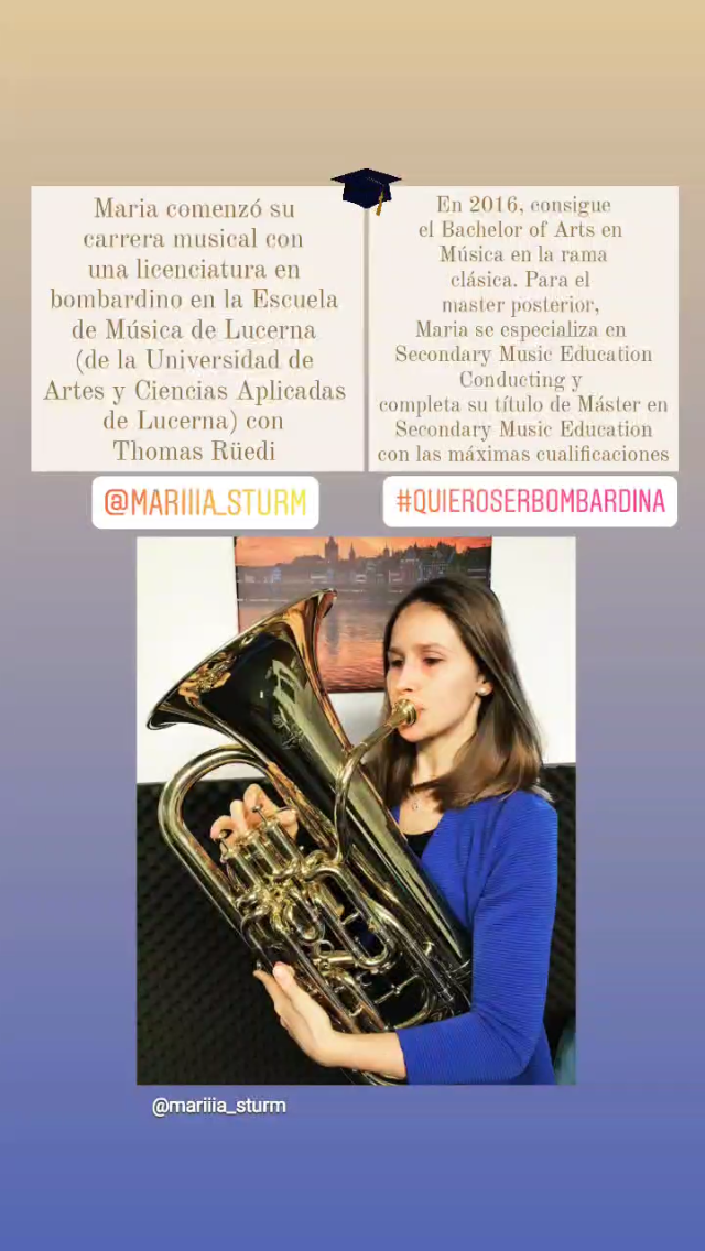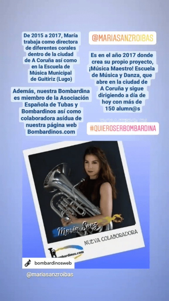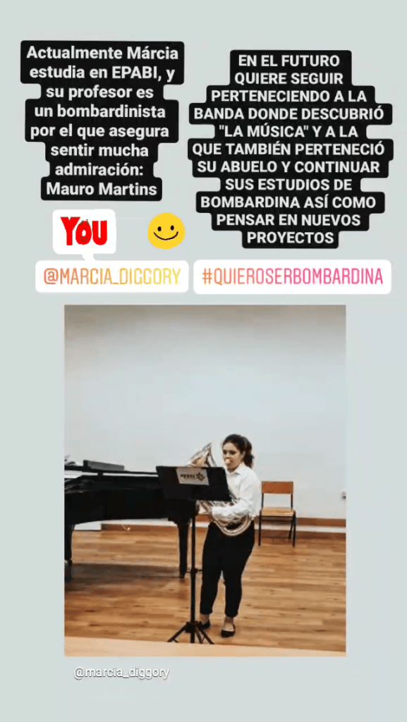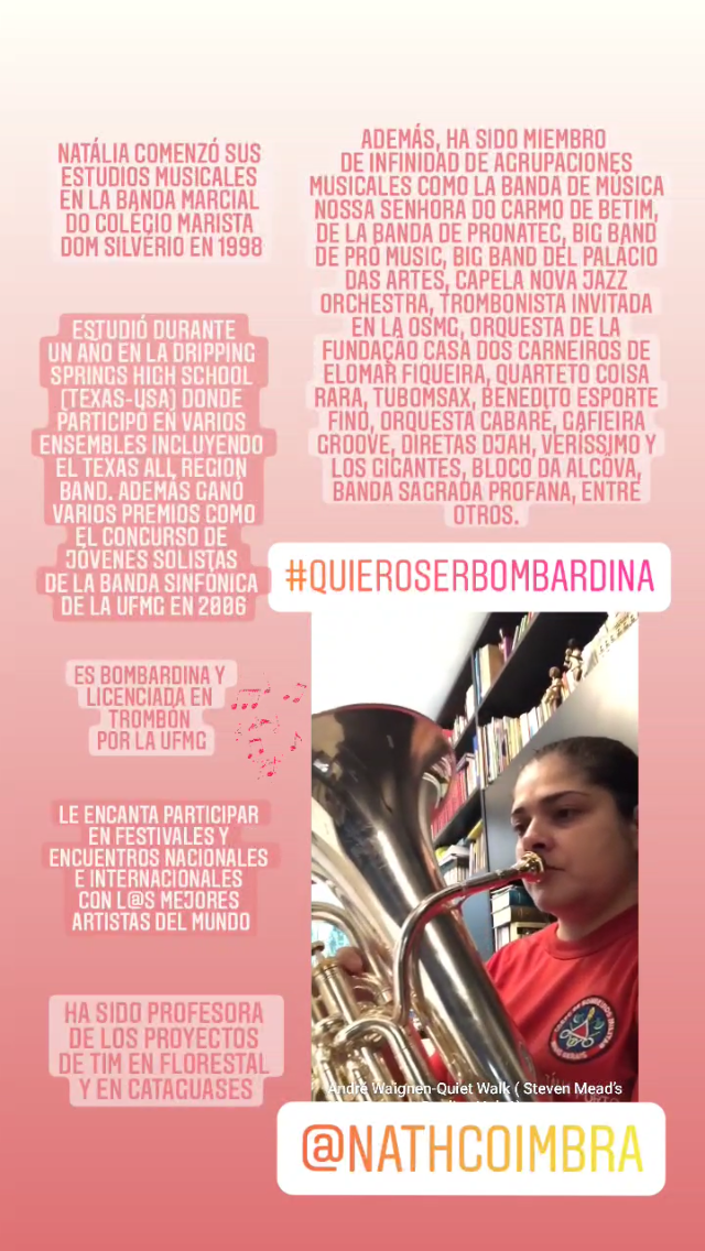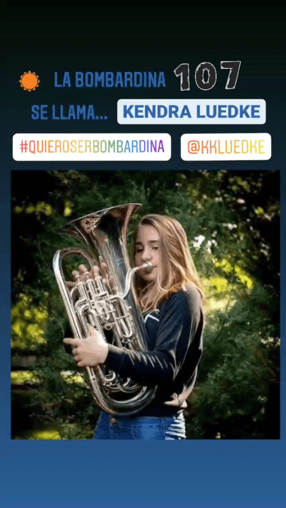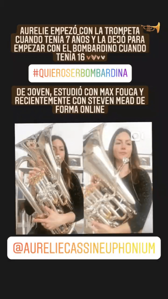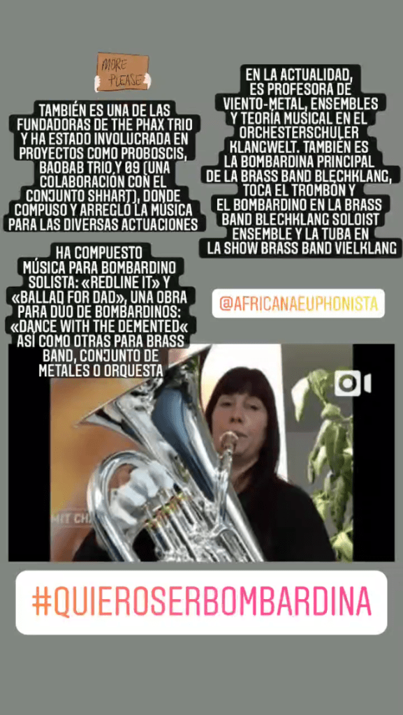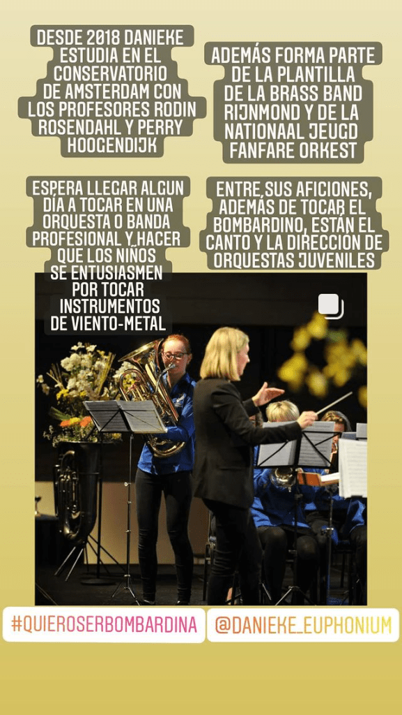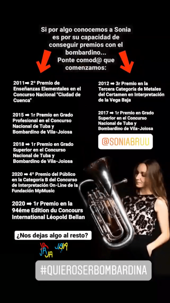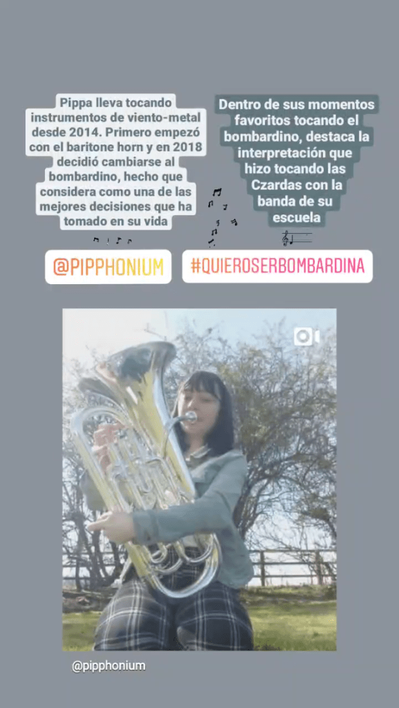 La estrategia principal de la campaña radica en la difusión y promoción en RRSS de mujeres de cualquier parte del mundo que toquen el bombardino. Desde el 8 de enero hasta el 8 de marzo, nuestras RRSS compartirán diariamente fotos y vídeos de mujeres «bombardinas» con el objetivo de fomentar la inclusión de la mujer en este instrumento, visibilizar su papel, reivindicar que no son una excepción en el sector y que son modelos a seguir para las futuras generaciones de mujeres bombardinistas.