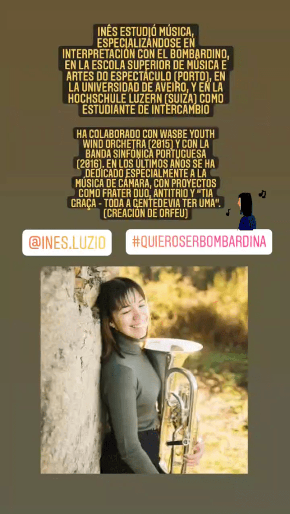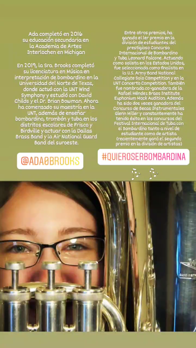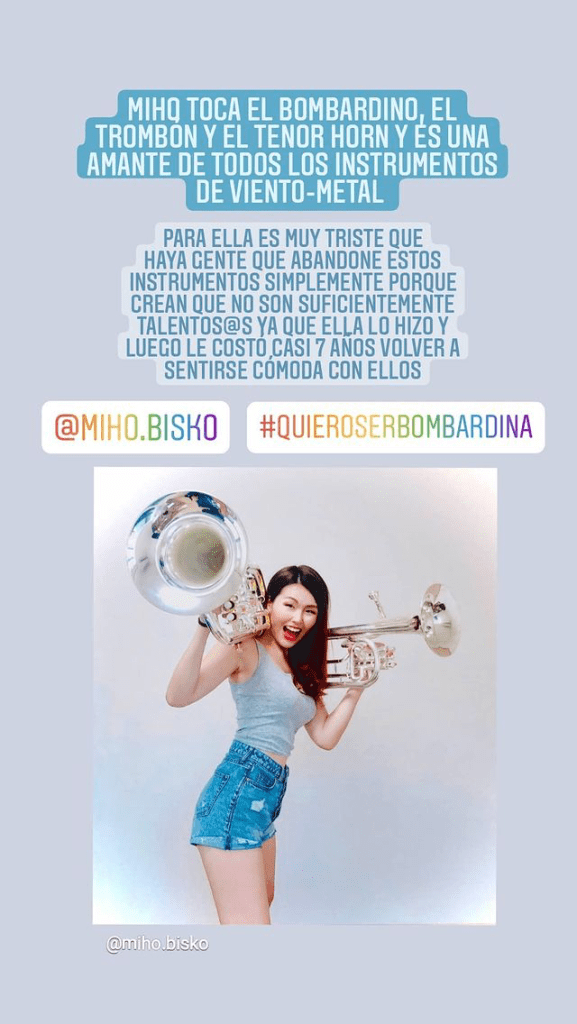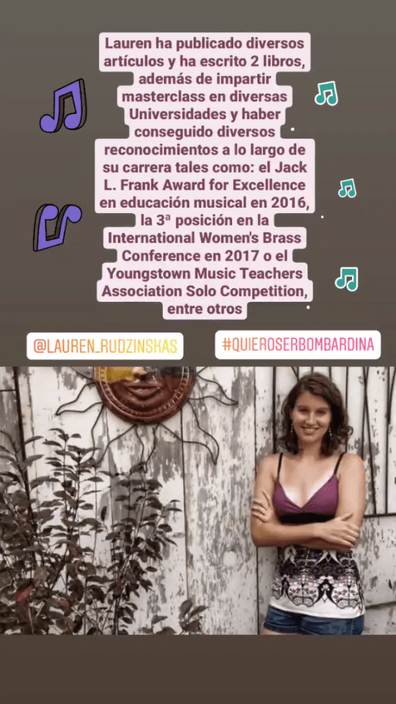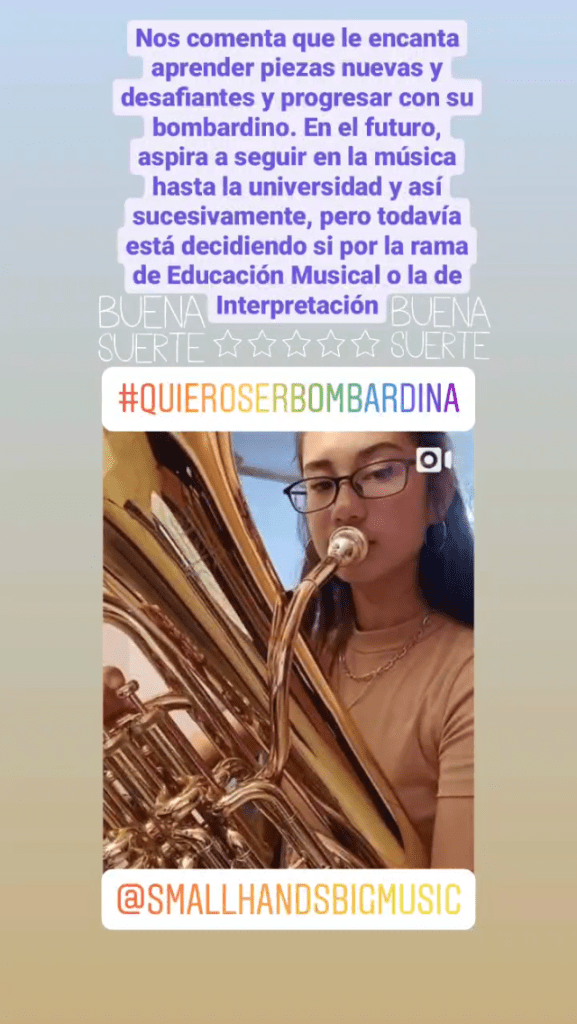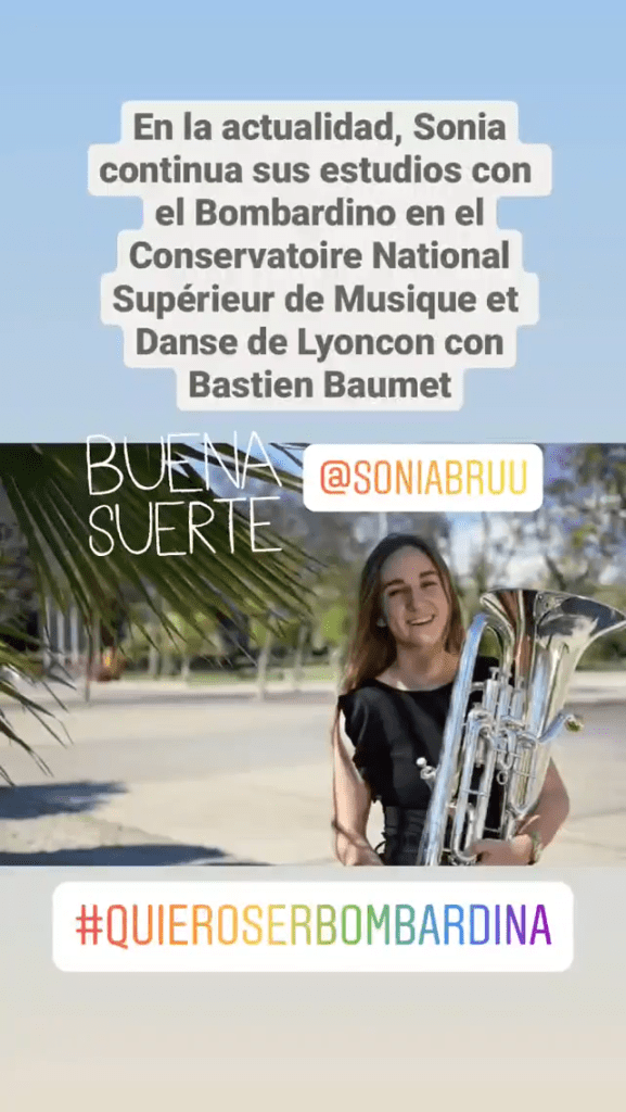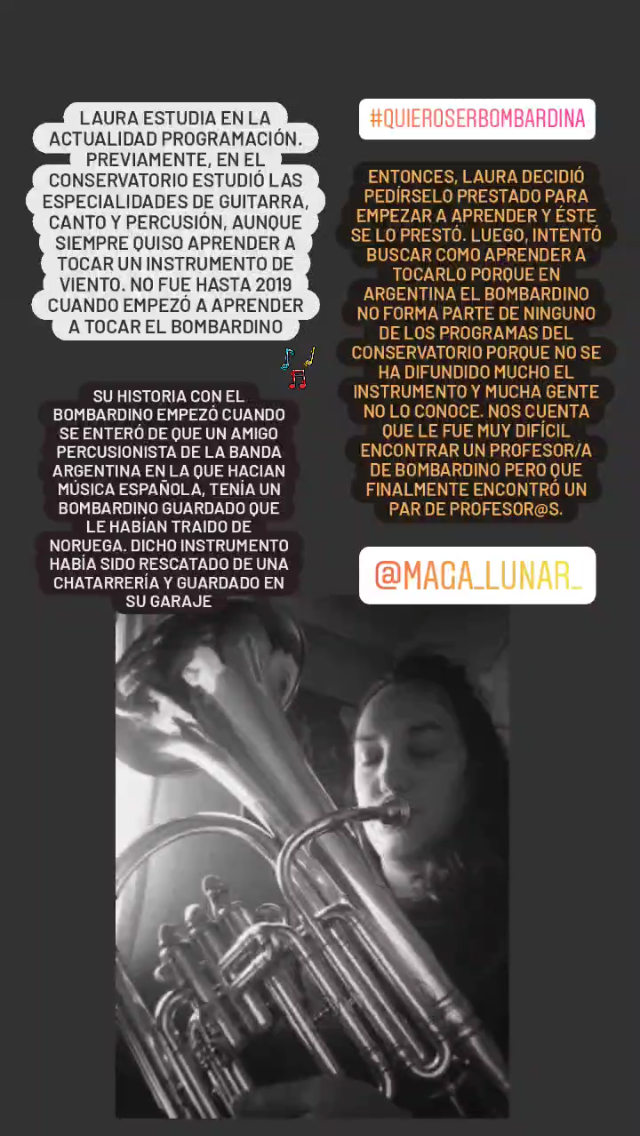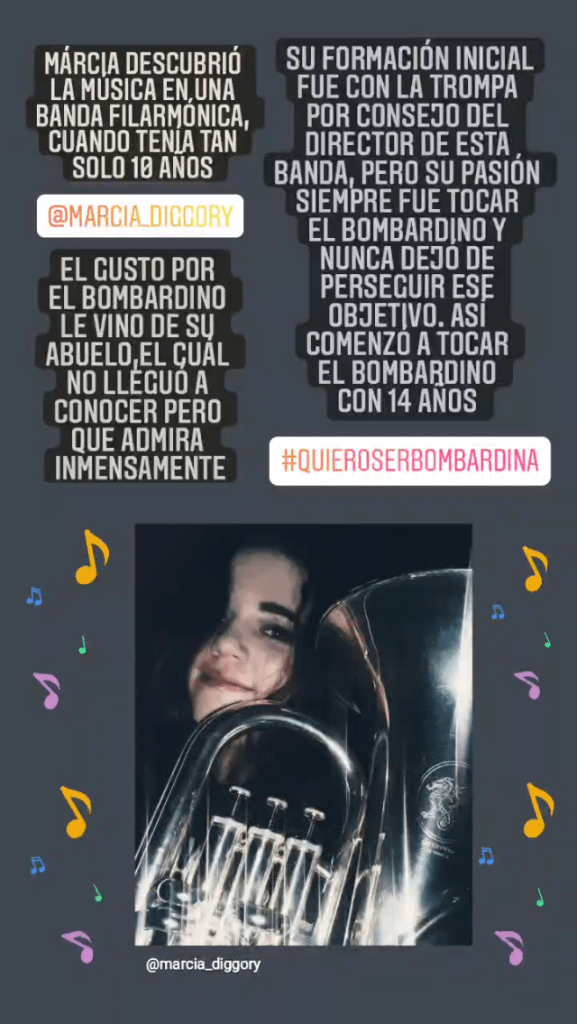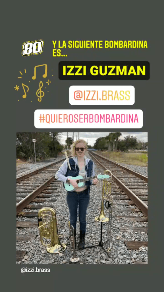 La estrategia principal de la campaña radica en la difusión y promoción en RRSS de mujeres de cualquier parte del mundo que toquen el bombardino. Desde el 8 de enero hasta el 8 de marzo, nuestras RRSS compartirán diariamente fotos y vídeos de mujeres «bombardinas» con el objetivo de fomentar la inclusión de la mujer en este instrumento, visibilizar su papel, reivindicar que no son una excepción en el sector y que son modelos a seguir para las futuras generaciones de mujeres bombardinistas.