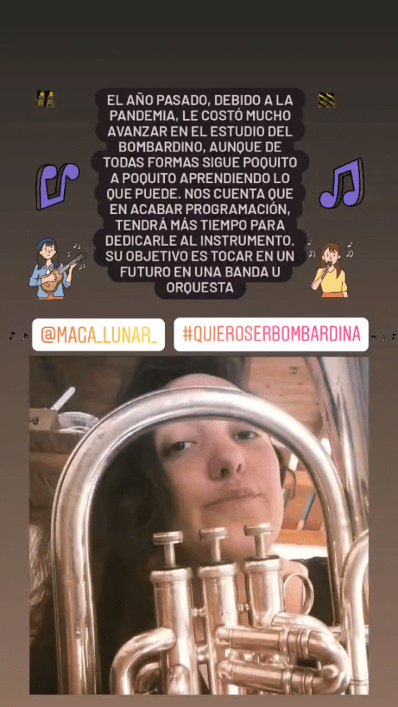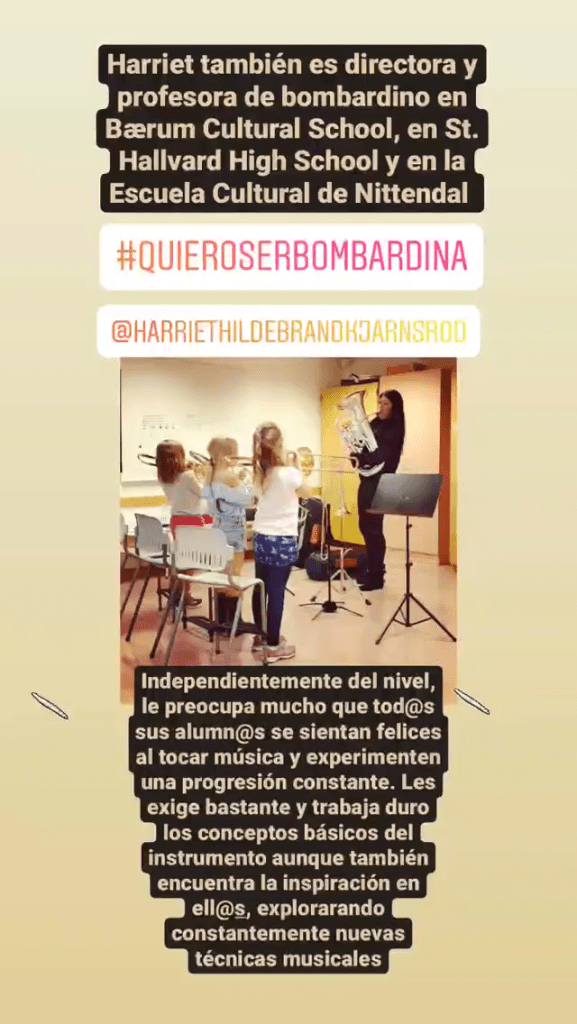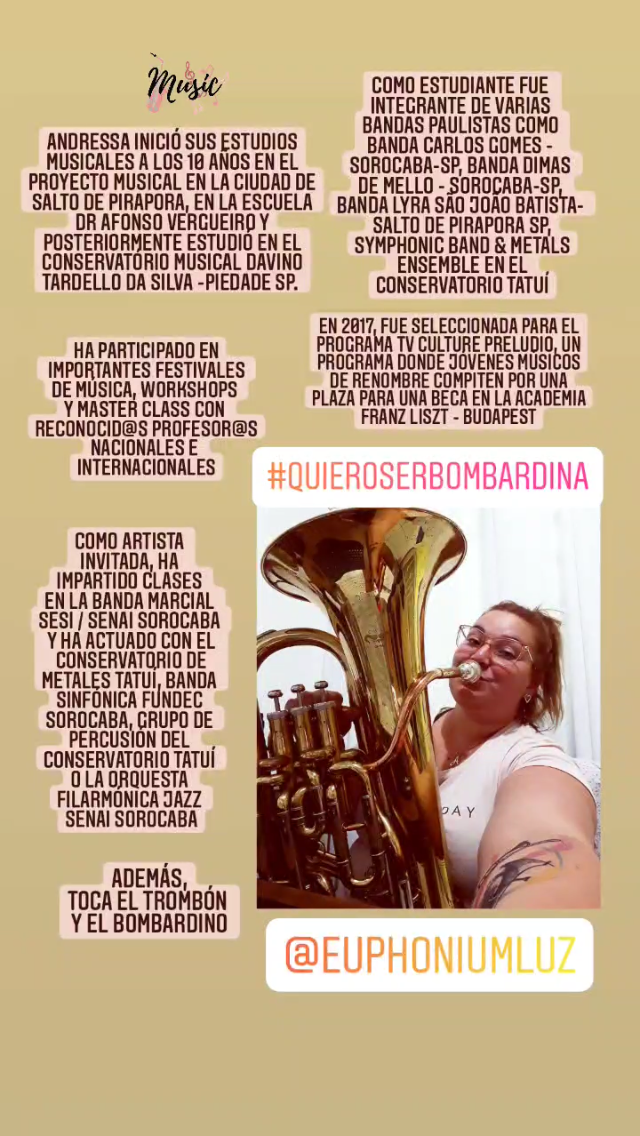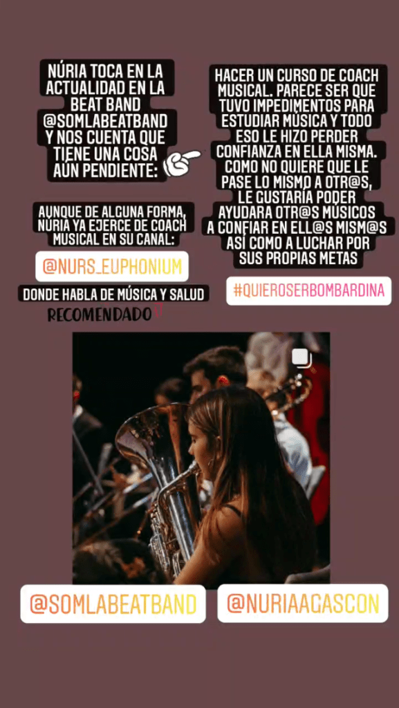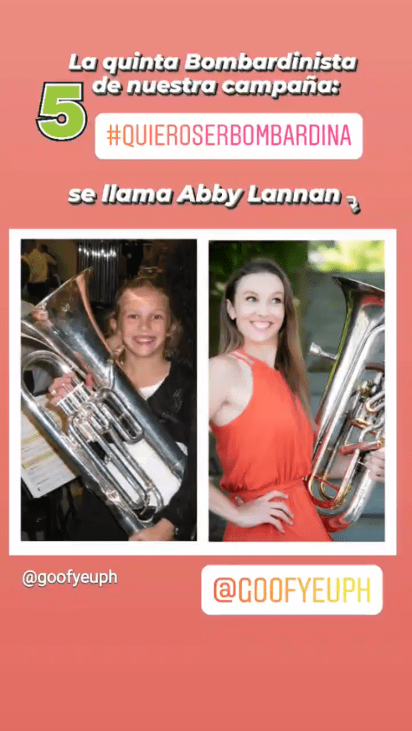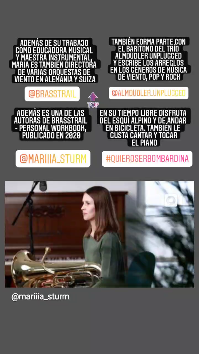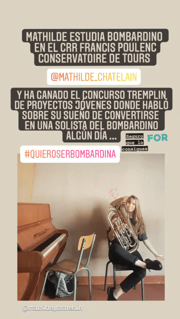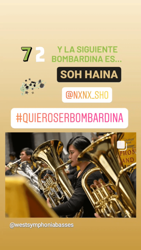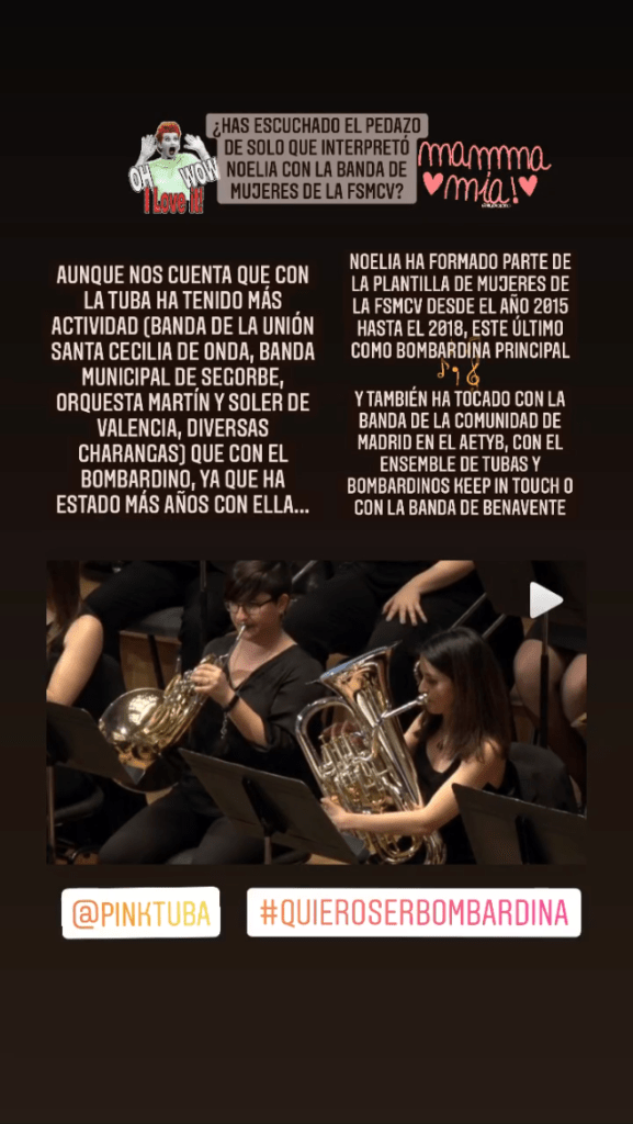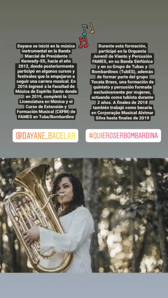 La estrategia principal de la campaña radica en la difusión y promoción en RRSS de mujeres de cualquier parte del mundo que toquen el bombardino. Desde el 8 de enero hasta el 8 de marzo, nuestras RRSS compartirán diariamente fotos y vídeos de mujeres «bombardinas» con el objetivo de fomentar la inclusión de la mujer en este instrumento, visibilizar su papel, reivindicar que no son una excepción en el sector y que son modelos a seguir para las futuras generaciones de mujeres bombardinistas.