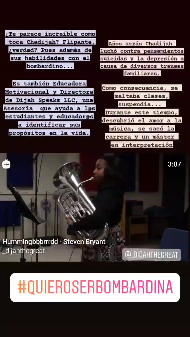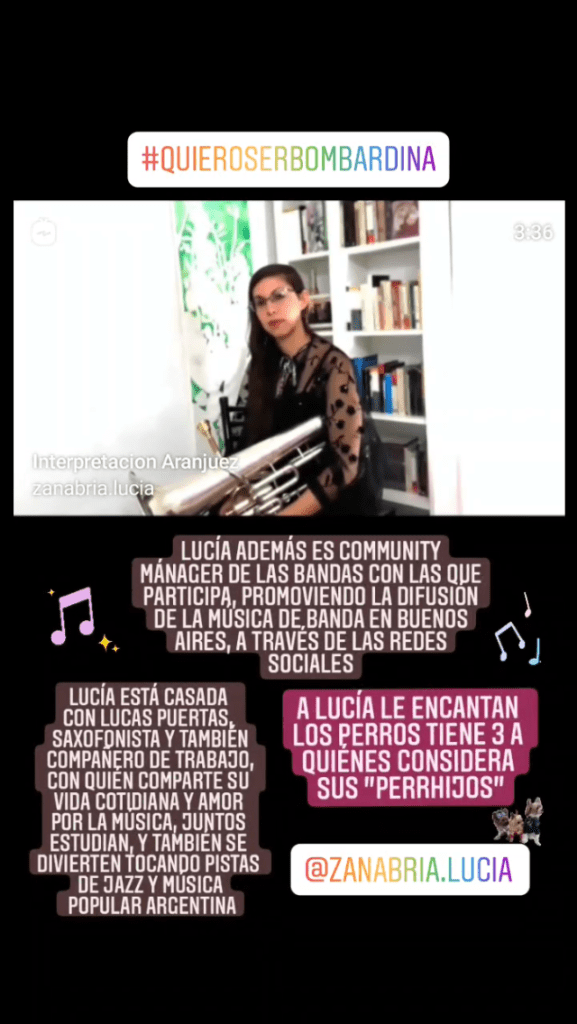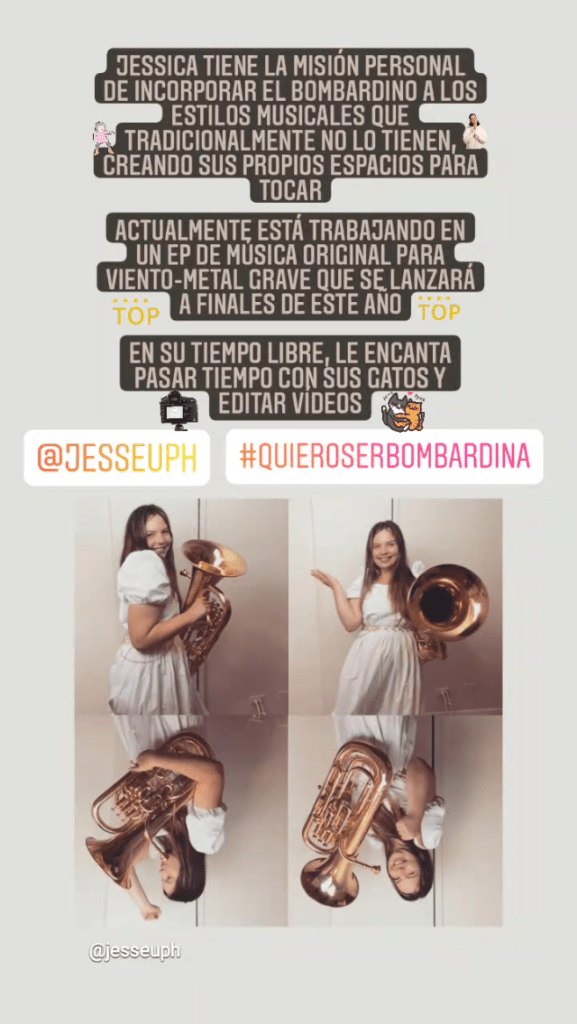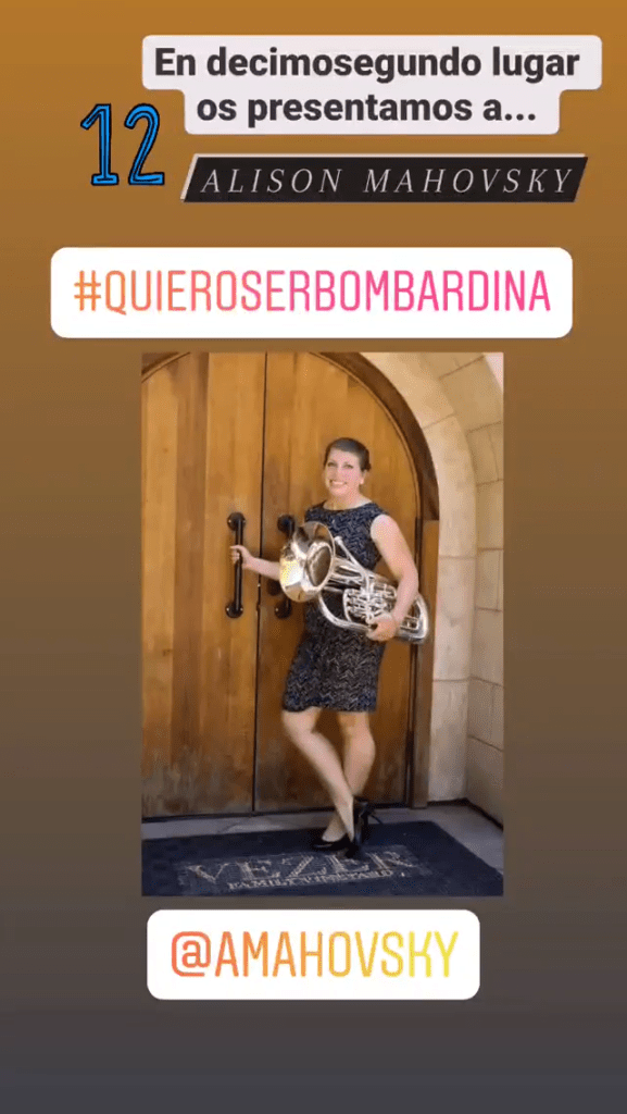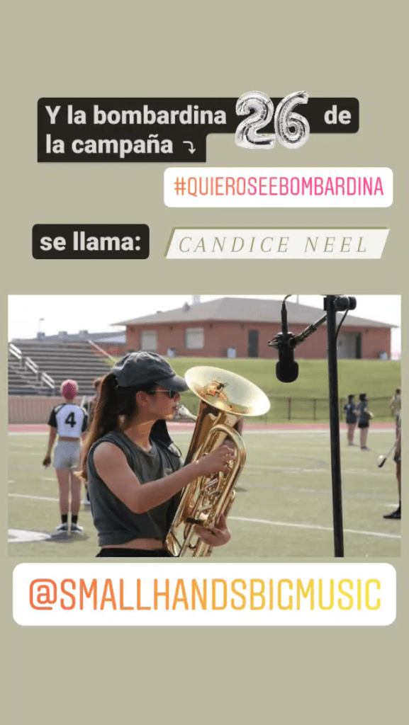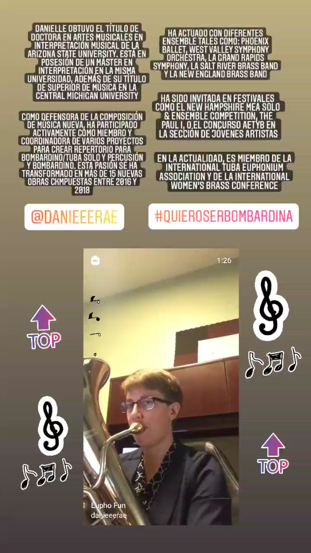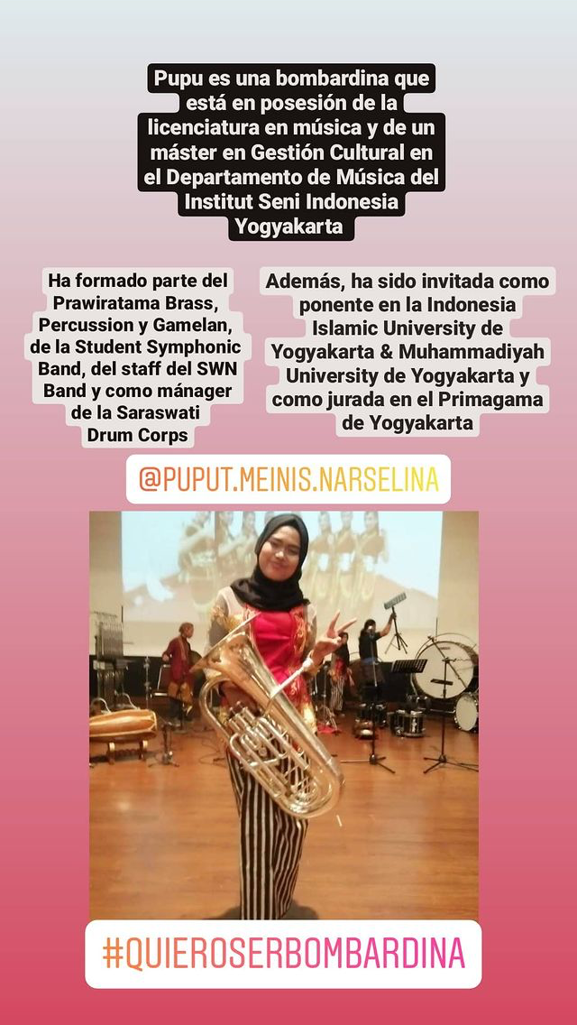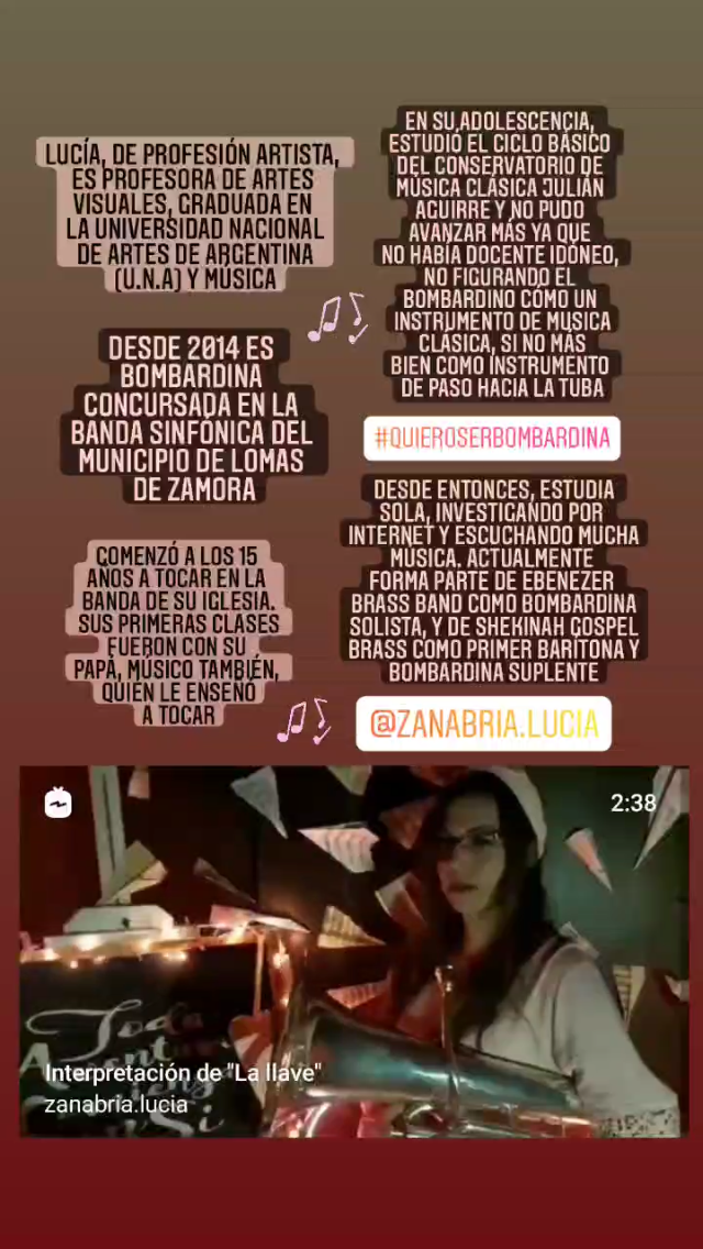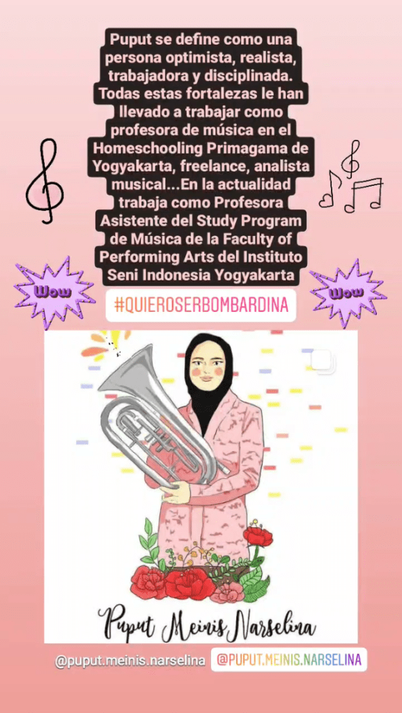 La estrategia principal de la campaña radica en la difusión y promoción en RRSS de mujeres de cualquier parte del mundo que toquen el bombardino. Desde el 8 de enero hasta el 8 de marzo, nuestras RRSS compartirán diariamente fotos y vídeos de mujeres «bombardinas» con el objetivo de fomentar la inclusión de la mujer en este instrumento, visibilizar su papel, reivindicar que no son una excepción en el sector y que son modelos a seguir para las futuras generaciones de mujeres bombardinistas.