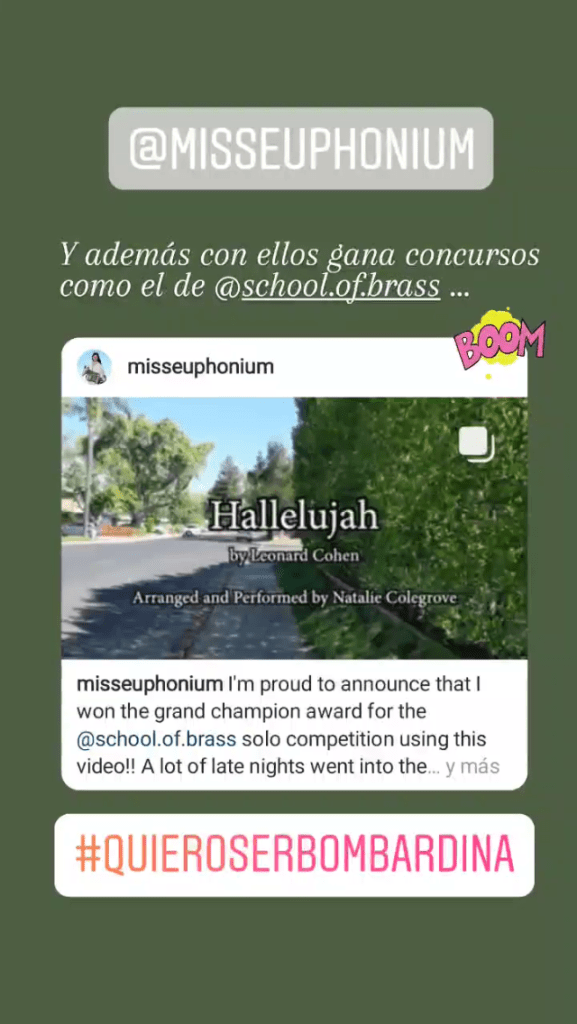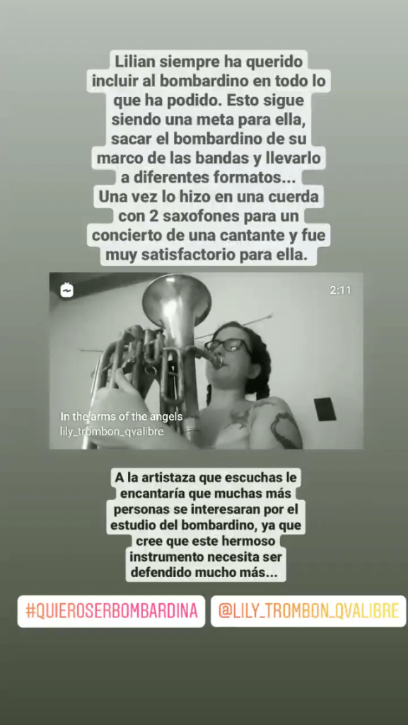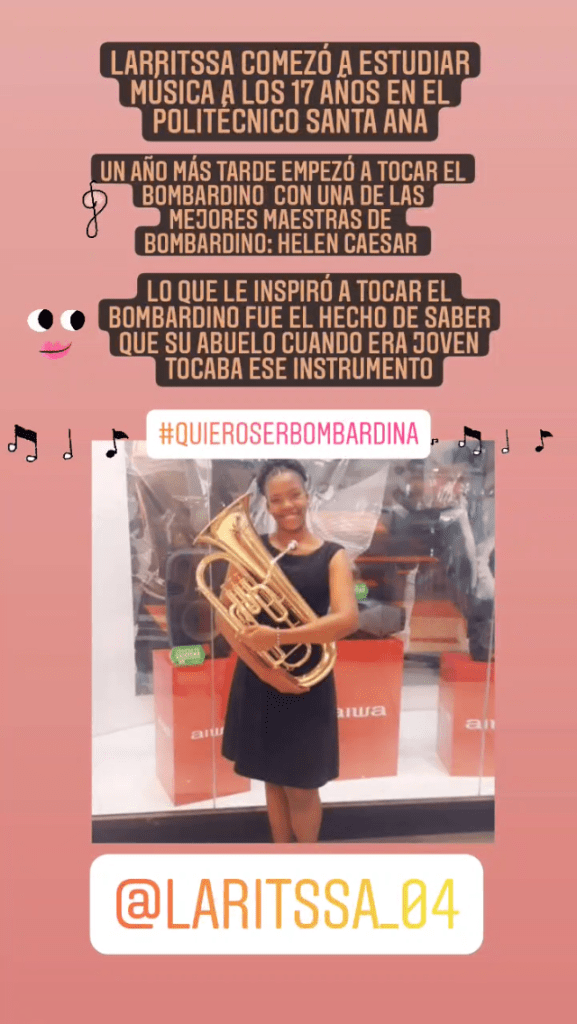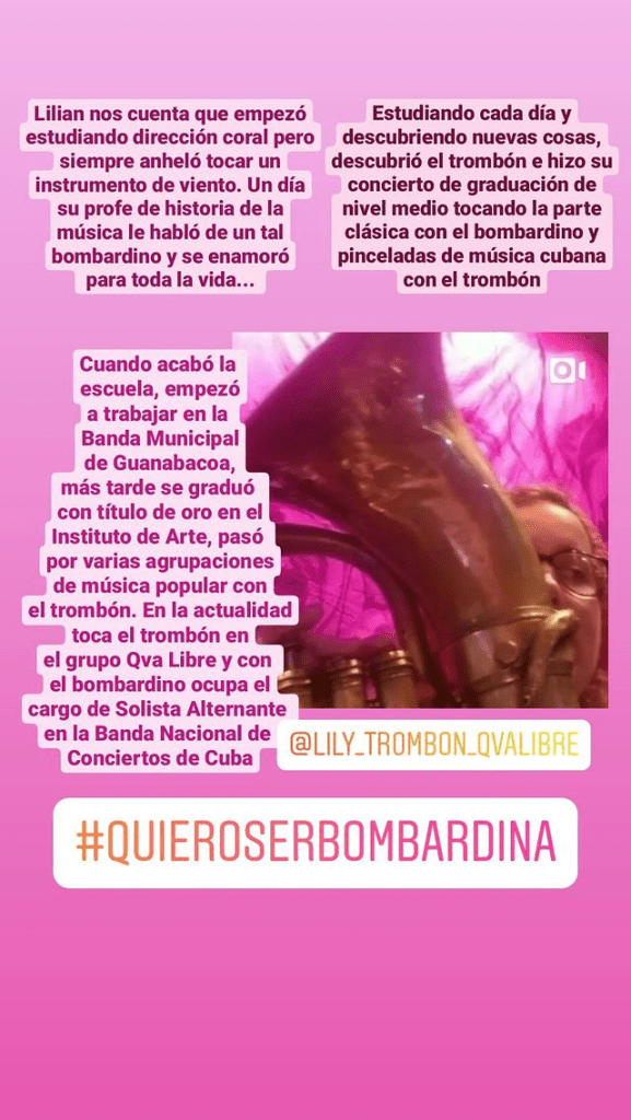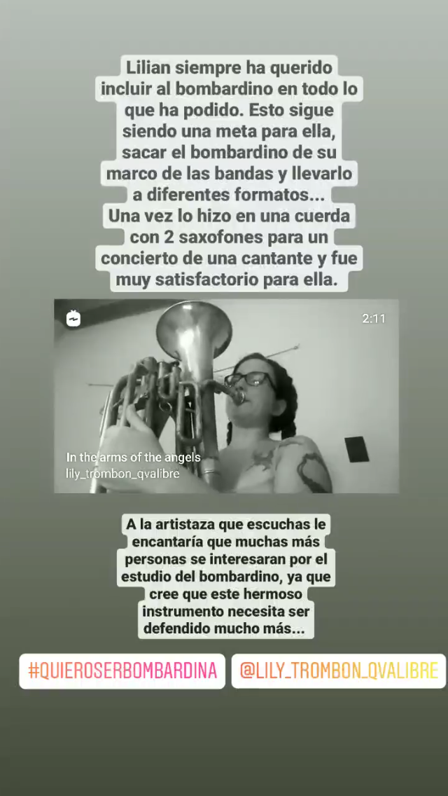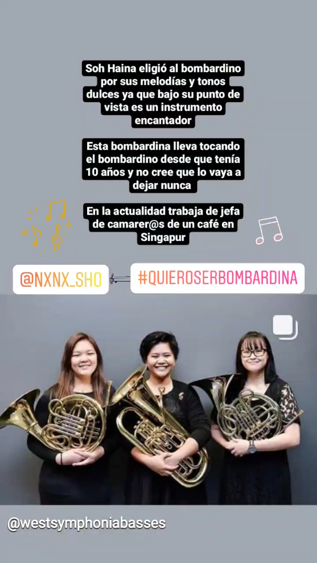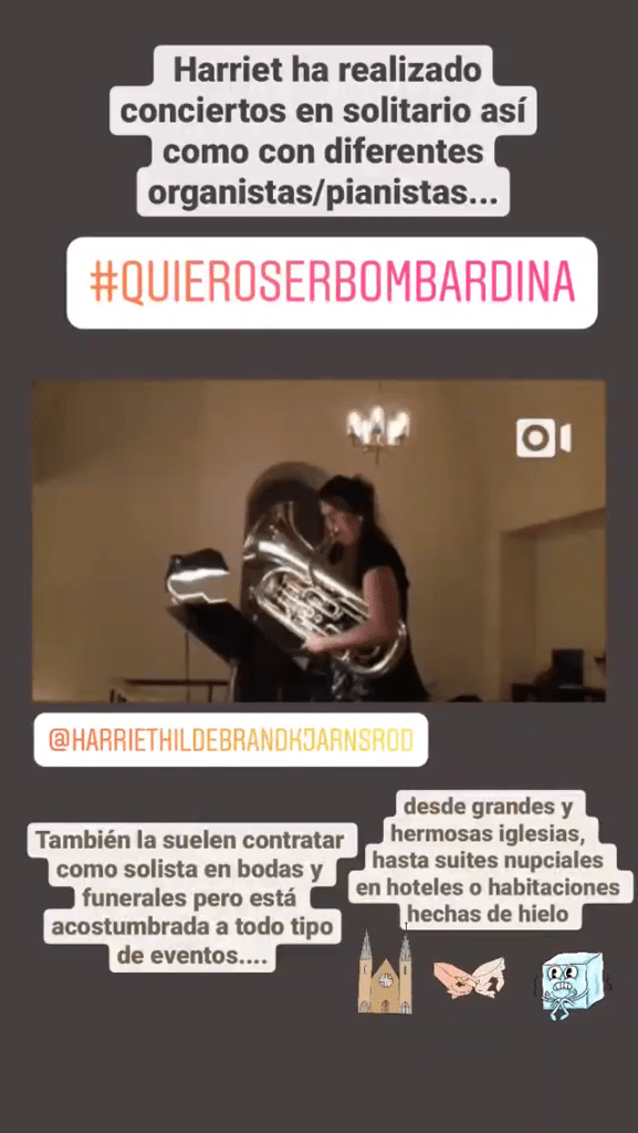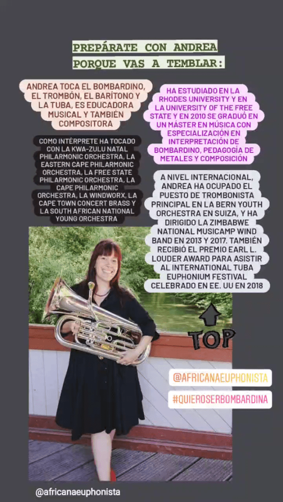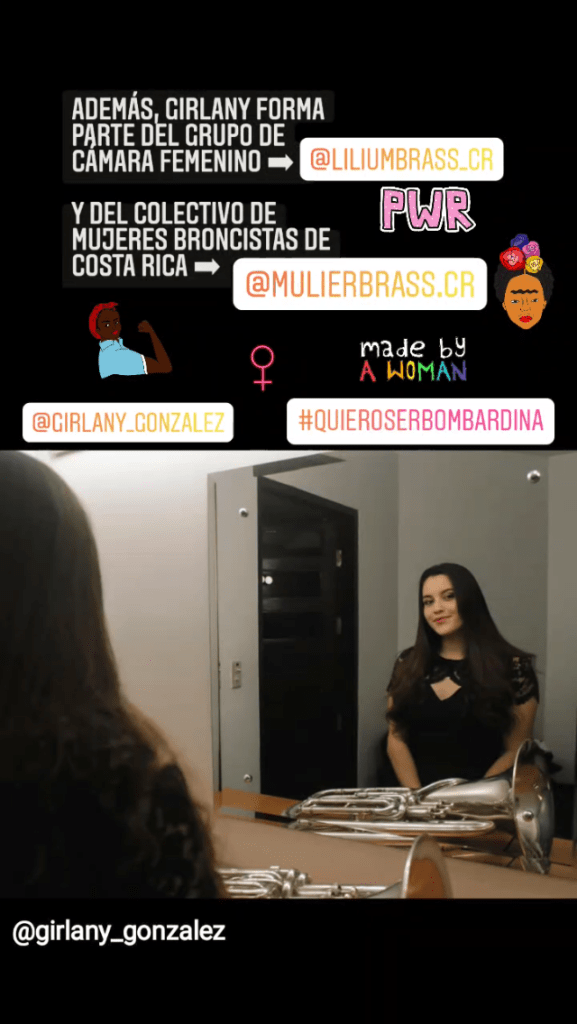 La estrategia principal de la campaña radica en la difusión y promoción en RRSS de mujeres de cualquier parte del mundo que toquen el bombardino. Desde el 8 de enero hasta el 8 de marzo, nuestras RRSS compartirán diariamente fotos y vídeos de mujeres «bombardinas» con el objetivo de fomentar la inclusión de la mujer en este instrumento, visibilizar su papel, reivindicar que no son una excepción en el sector y que son modelos a seguir para las futuras generaciones de mujeres bombardinistas.