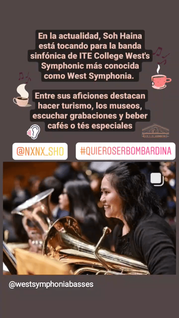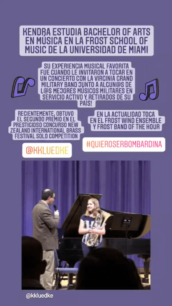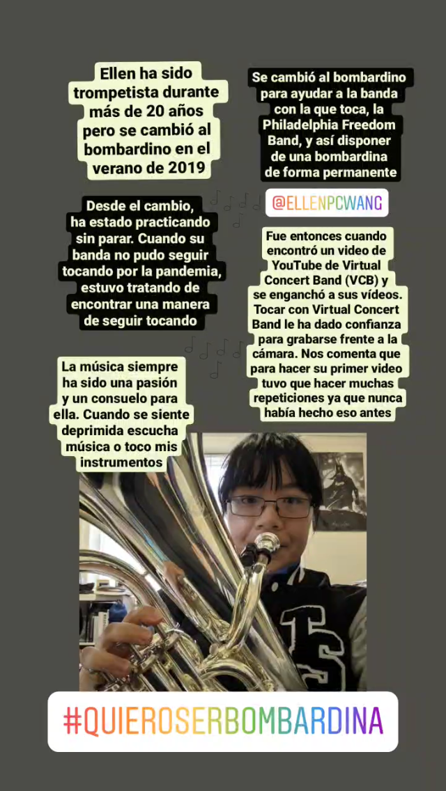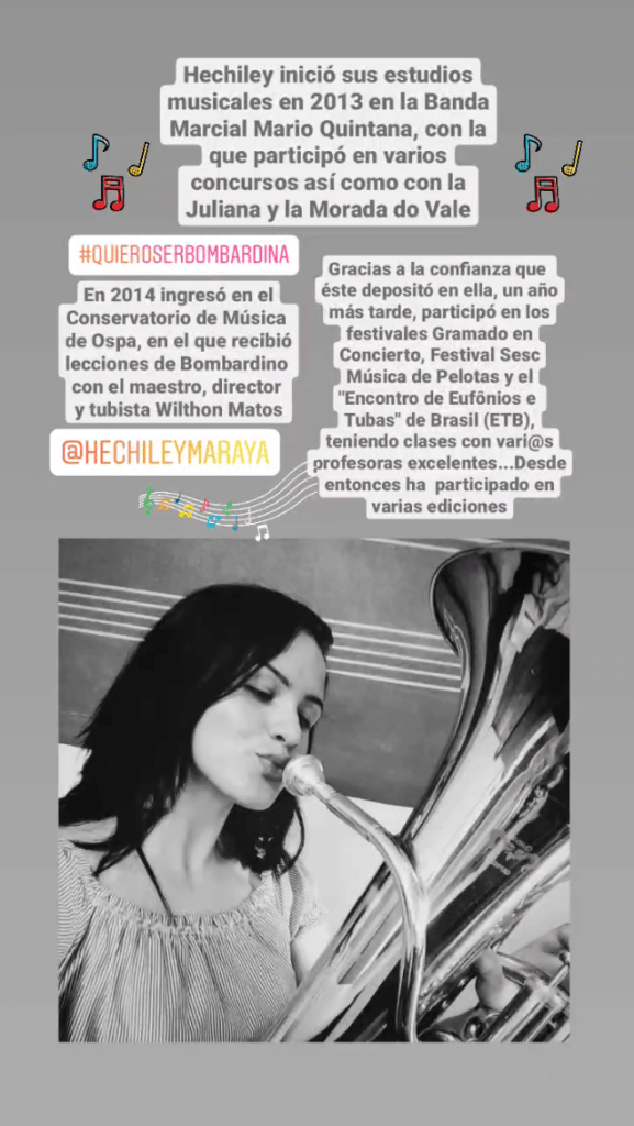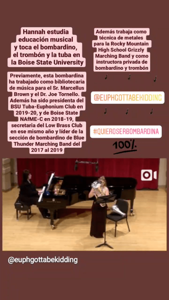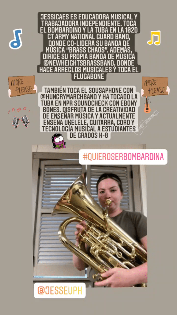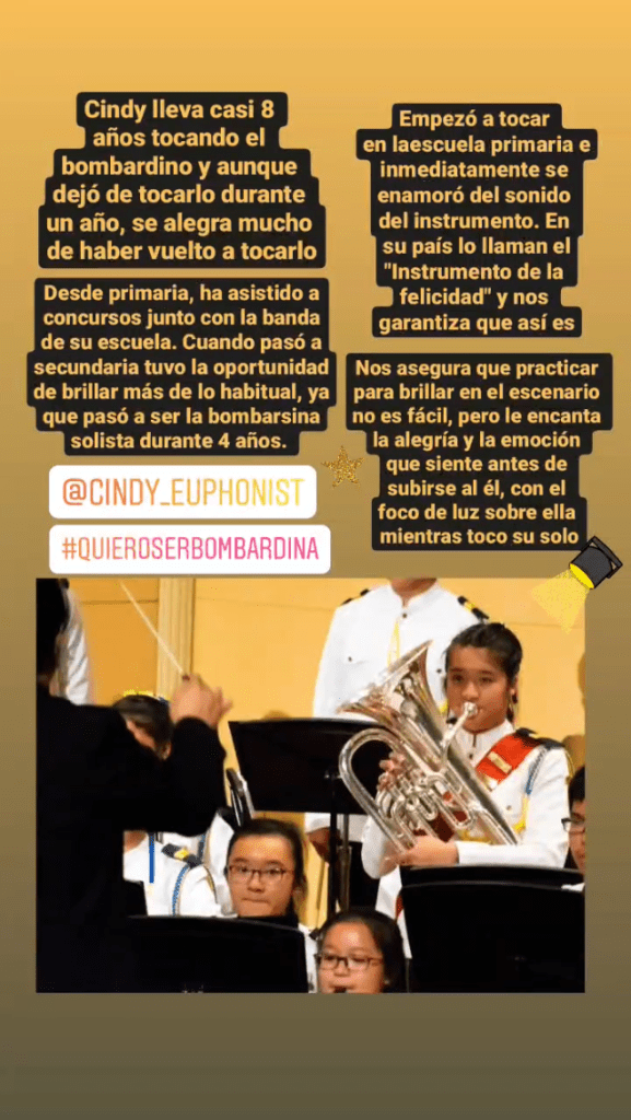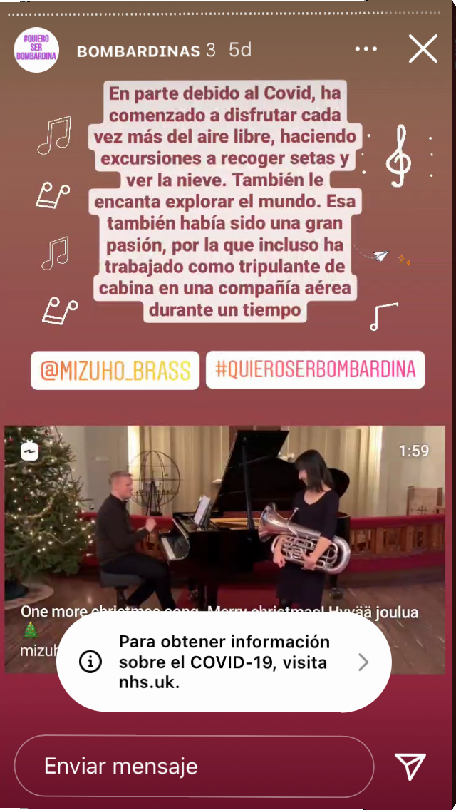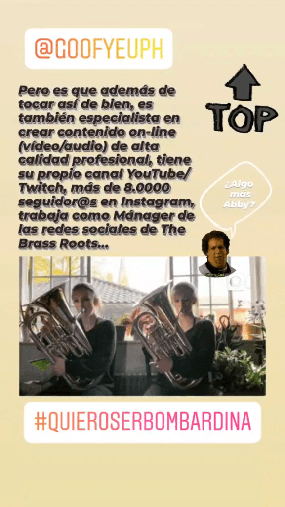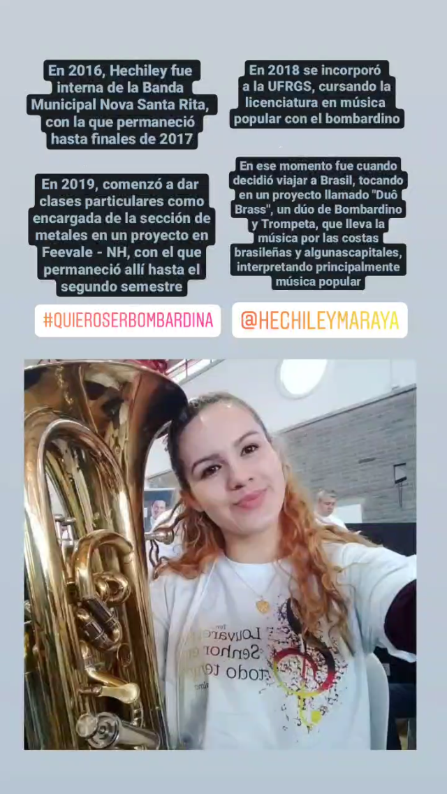 La estrategia principal de la campaña radica en la difusión y promoción en RRSS de mujeres de cualquier parte del mundo que toquen el bombardino. Desde el 8 de enero hasta el 8 de marzo, nuestras RRSS compartirán diariamente fotos y vídeos de mujeres «bombardinas» con el objetivo de fomentar la inclusión de la mujer en este instrumento, visibilizar su papel, reivindicar que no son una excepción en el sector y que son modelos a seguir para las futuras generaciones de mujeres bombardinistas.