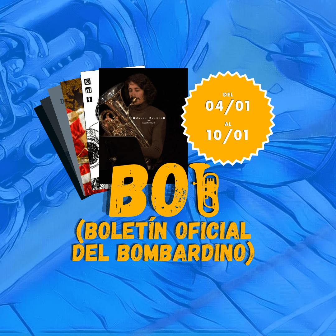 Semana del 11 al 17 de enero de 2021 11-01-21 «Flow» Review por 4barsrest magazine Publicada en la página web de 4barsrest.com la crítica sobre el CD «Flow» de Mauro Martins. #quieroserbombardina Bombardinos.com presenta a Laura Alba Tirado y a Lilian Trujillo en su campaña #quieroserbombardina 12-01-21 Nueva obra para bombardino Andrew Mackereth ha escrito una nueva obra paraSigue leyendo «BOB (Boletín Oficial del Bombardino) nº7»
