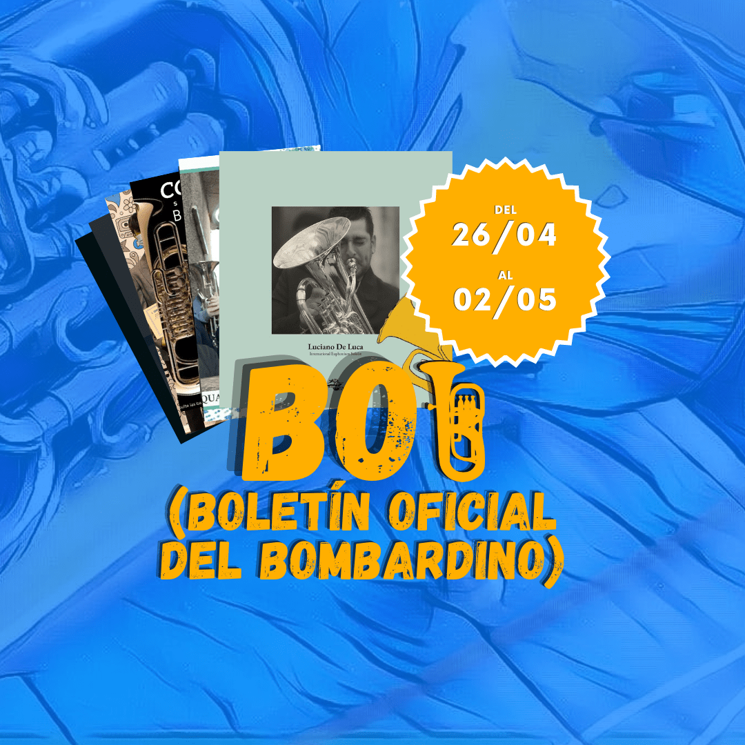 Semana del 19 al 25 de abril de 2021 19-04-21 CD «Twenty characteristic etudes» disponible en plataformas digitales. A partir de Mayor, estará disponible en iTunes, Spotify y en otras plataformas, el nuevo CD del tubista Sergio Carolino. El CD cuenta con la colaboración de Mauro Martins e incluye 9 estudios para bombardino además deSigue leyendo «BOB (Boletín Oficial del Bombardino) nº21»